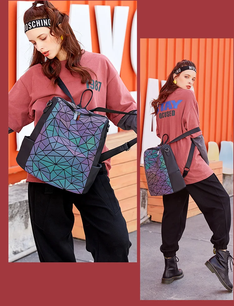 Светящийся рюкзак для женщин, вместительные рюкзаки для подростков, брендовая дизайнерская Дамская Дорожная сумка на ремне унисекс