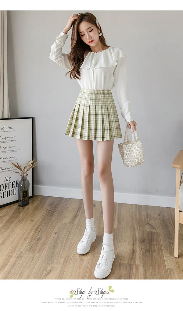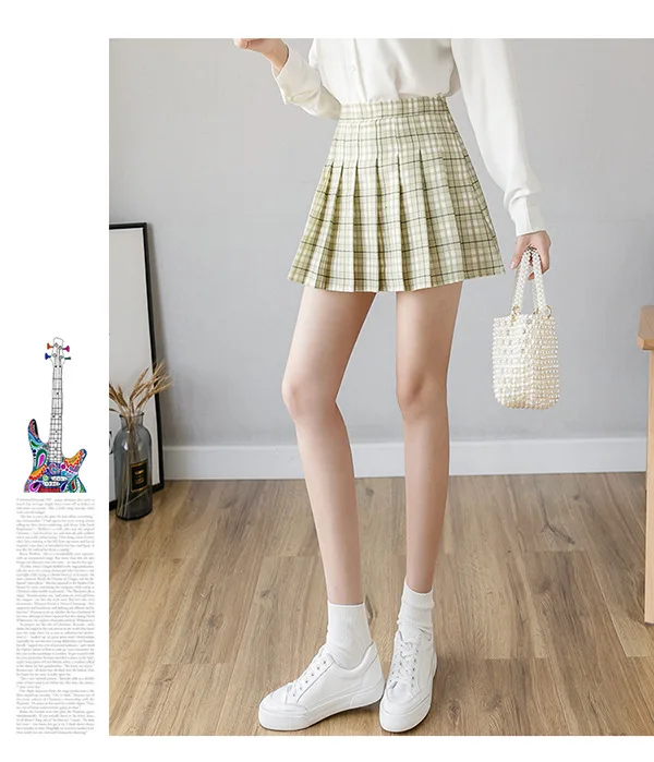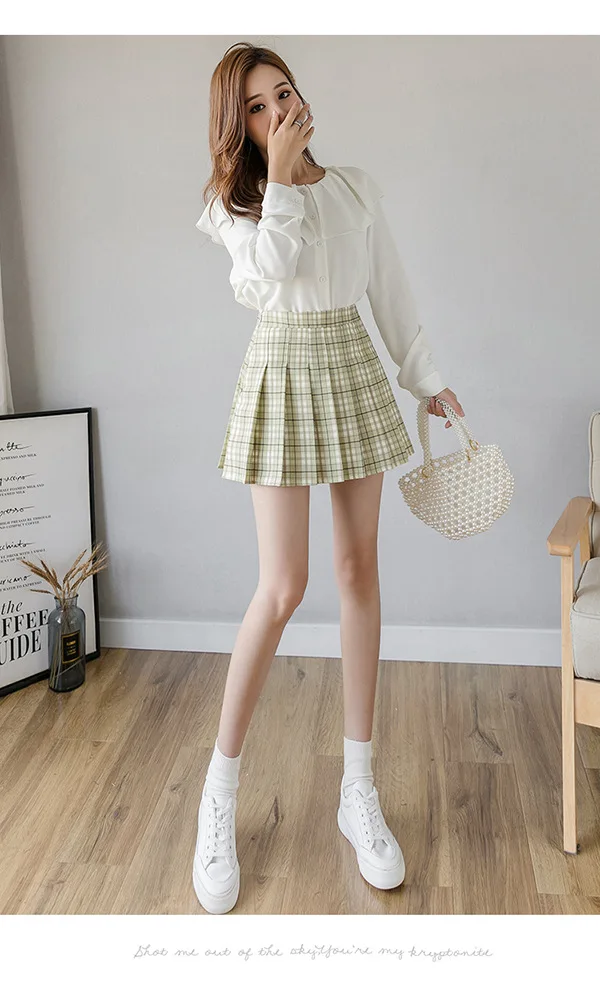 Юбка-мини женская, летняя, в клетку, с высокой талией