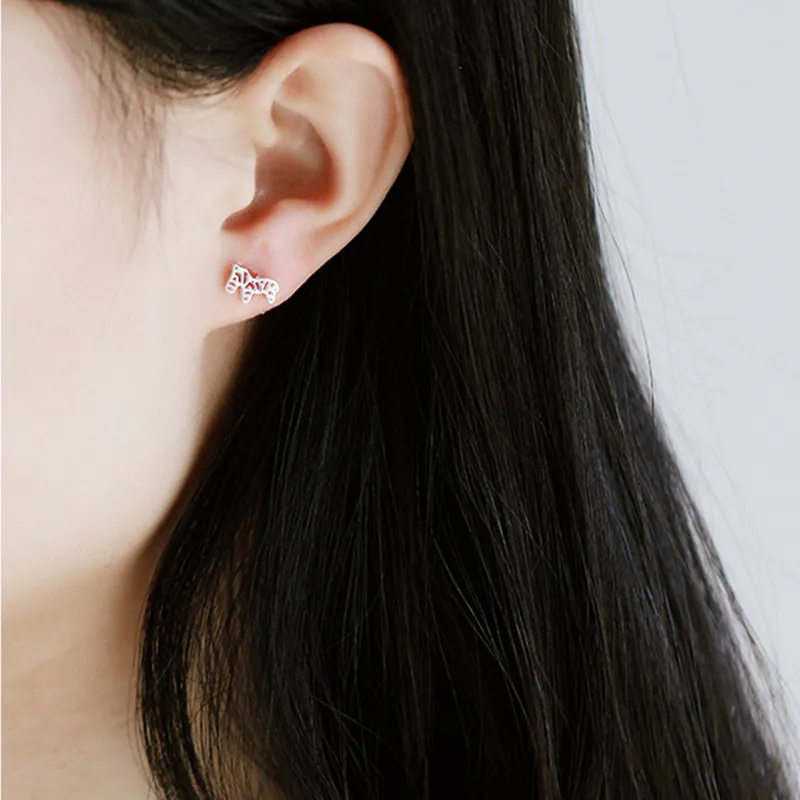 Подлинные 925 пробы серебряные серьги-гвоздики для женщин простые дикие Ccute Horse серьги ювелирные изделия не аллергические аксессуары