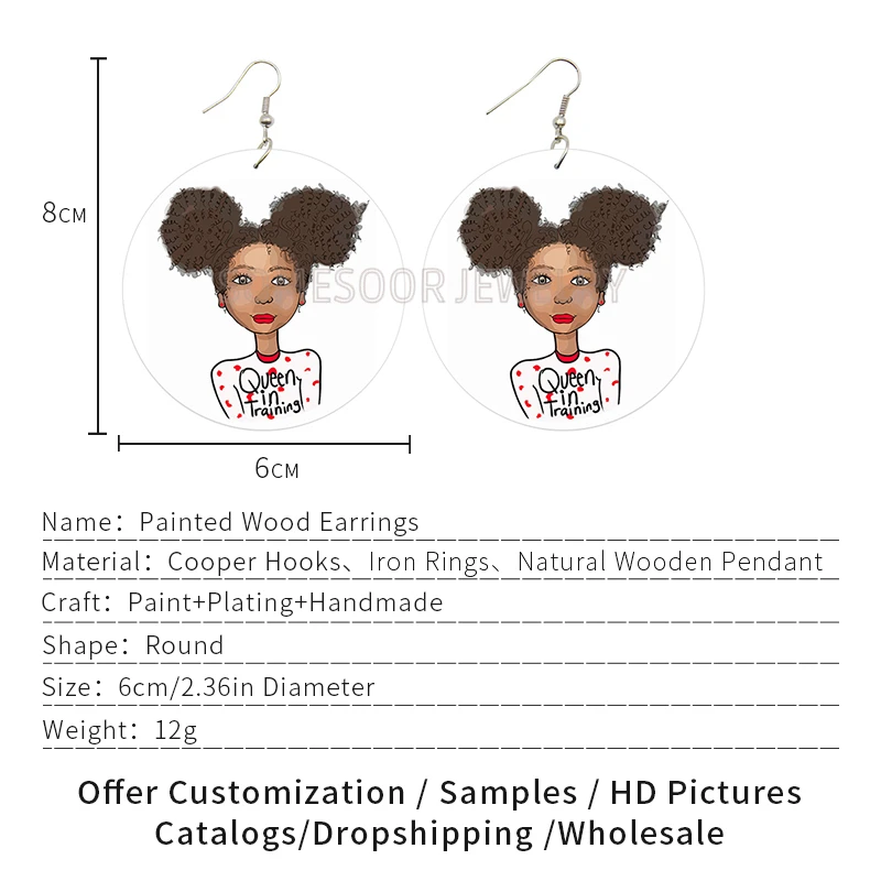Деревянные висячие серьги SOMESOOR, новинка 2020 года, для девочек, в стиле Африканской души, для тренировок, с королевой, в африканском стиле, подвесные украшения для женщин, подарки