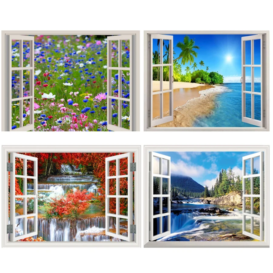 Окно пейзаж с цветком DIY Алмазная картина полностью Стразы картина мозаика 5D рукоделие Алмазная вышивка домашний декор AA2344