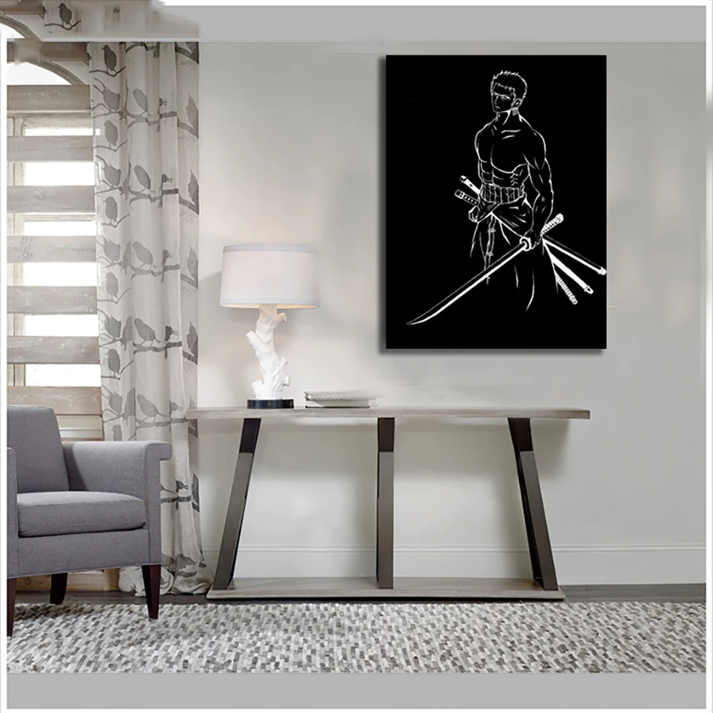 Модульная Картина на холсте, домашний декор, картины, один предмет, черно-белый ророноа Зоро, современный печатный плакат, японское аниме, настенное искусство
