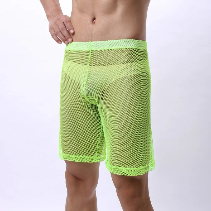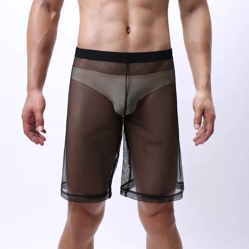 Мужские шорты, сетчатые прозрачные трусики, нижнее белье, Клубная одежда, мужские сексуальные свободные гей-брюки, Wetlook нижнее белье, трусы