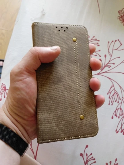 Как и в описании. Arrived in 2 weeks. Чехол Изготовлен из мягкой резины, хорошо держит телефон. Сзади есть пластик для защиты камеры, очень умный. Крышка закрыта скрытыми магнитами. Внешний материал-синтетический материал, это не ткань или кожа. Я не знаю, как долго это продлится, но за такую цену, если это продлится год, это нормально.
