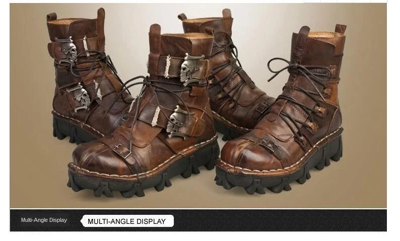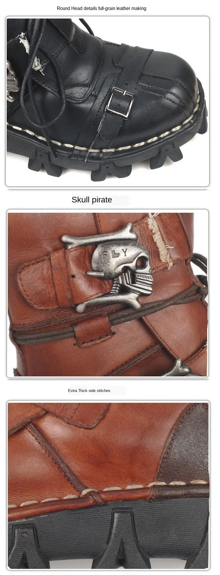 Мотоциклетные ботинки из натуральной кожи; Военные армейские ботинки; Готические панковские ботинки с черепом; Тактические ботинки для верховой езды; Мужские зимние ботинки