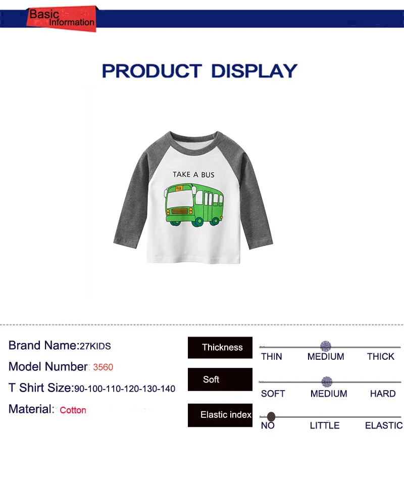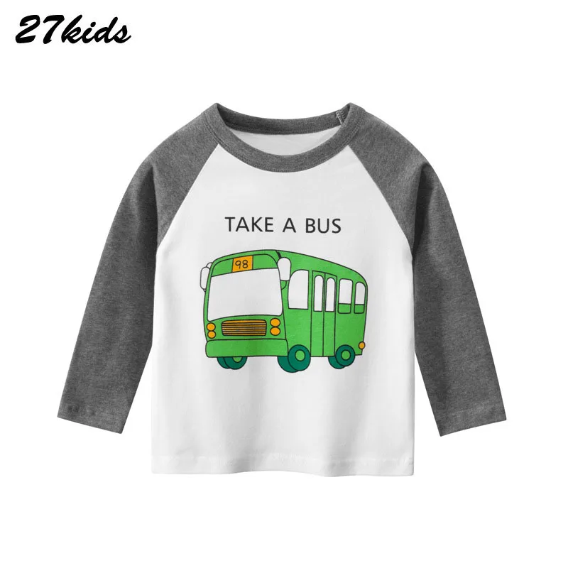 Футболка с длинным рукавом для мальчиков и девочек, хлопковая Осенняя толстовка с рисунком автобуса, 27 шт.