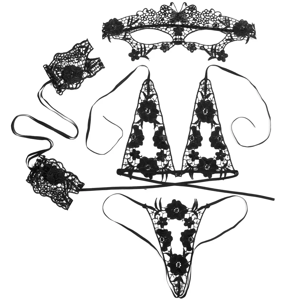 Комплект женского сексуального нижнего белья, 4 шт., кружевная маск...