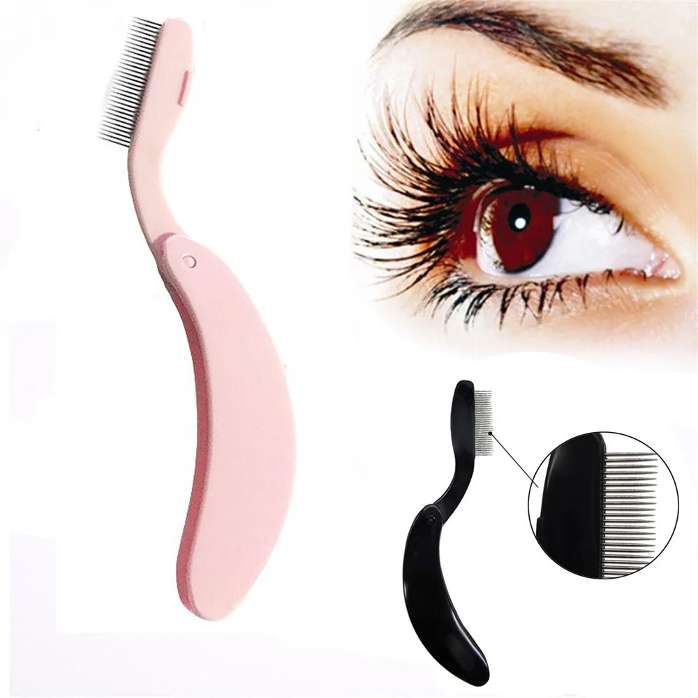 1 шт. розоваячерная складная стальная расческа для бровей, щетка для наращивания ресниц, профессиональная Полезная металлическая расческа, косметические инструменты для макияжа