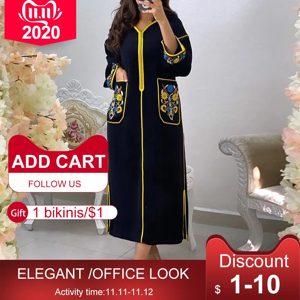 Осеннее женское длинное платье 2020, Модные Винтажные вечерние платья макси на молнии с цветочным принтом, женские платья для офиса