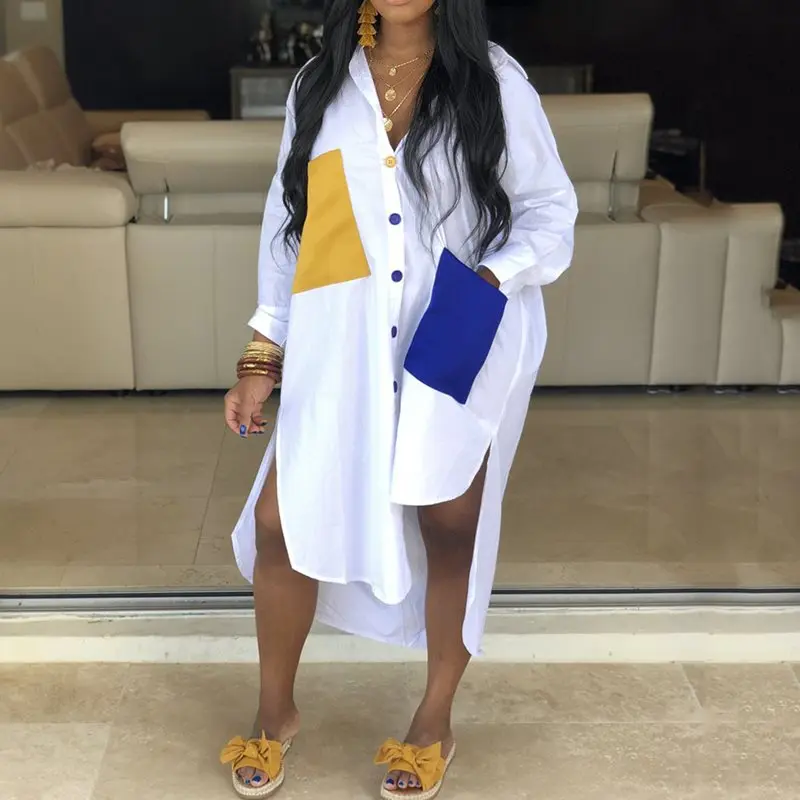 Повседневные женские длинные рубашки; Модель 2020 года; Сезон осень; Платье с длинными рукавами; Повседневная Блузка с разрезом для свиданий; Женская летняя блузка