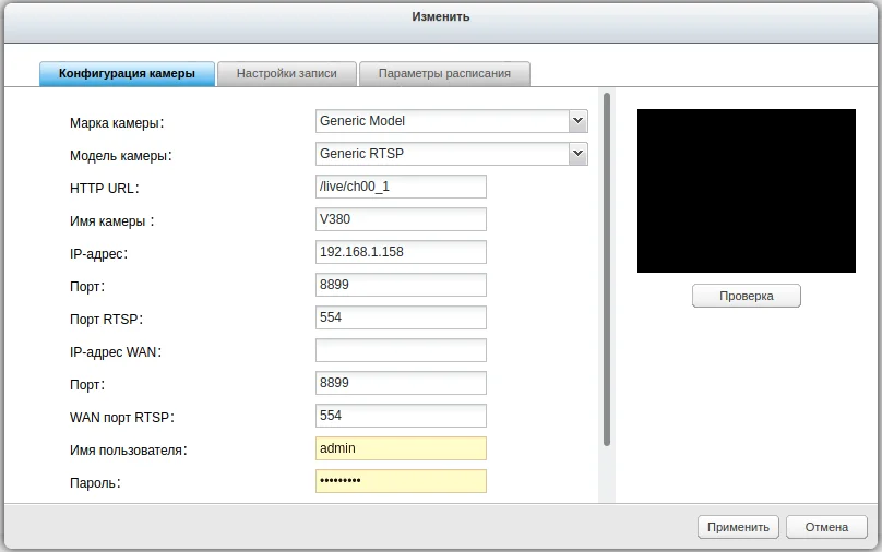 Камера - обычный клон камер компании Macro Video, но в формате дверного глазка. Попросил версию ONVIF и получил камеру с поддержкой ONVIF. Приехала камера быстро, к упаковке тоже никаких претензий. Камера поддерживает протокол Onvif 2.2. К сожалению, Surveillance Station 5.1.5.3.0 (2020/01/09) на моём QNAP не знает о таком производителе (определяется как "IPCAM" или "HS-Camera"). И мне не удалось подключить камеру как ONVIF (выдавал ошибку). Пришлось подключать как обычный RTSP-поток. Скриншоты прикладываю. Manufacturer: Shenzhen Trolink Technology CO, LTD 640х480: rtsp://camera_ip:554/live/ch00_0 1920х1080: rtsp://camera_ip:554/live/ch00_1 Onvif: camera_ip:8899