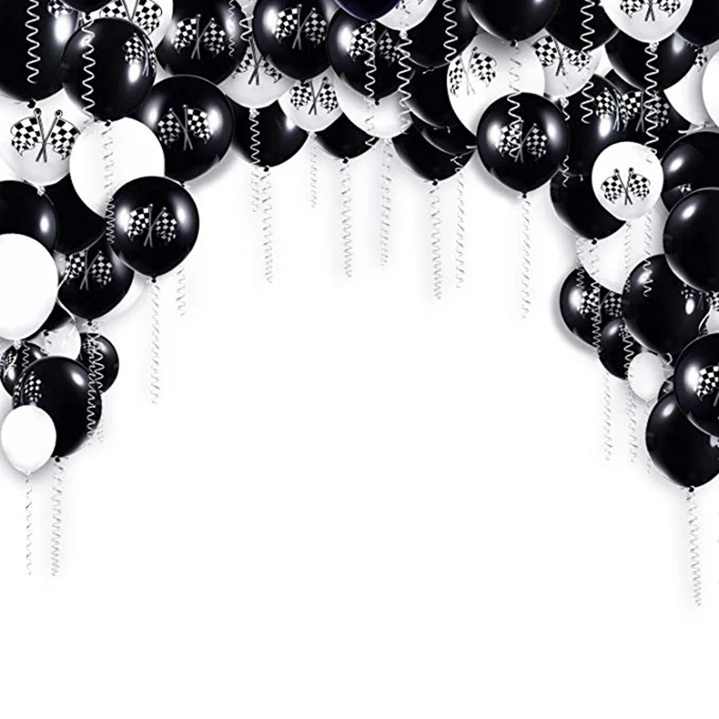 10 шт 12 дюймов черный, белый цвет Гоночный флаг воздушных шаров из латекса, клетчатый гоночные флаги воздушные шары с принтом Гоночная машина тема вечерние украшения Globos
