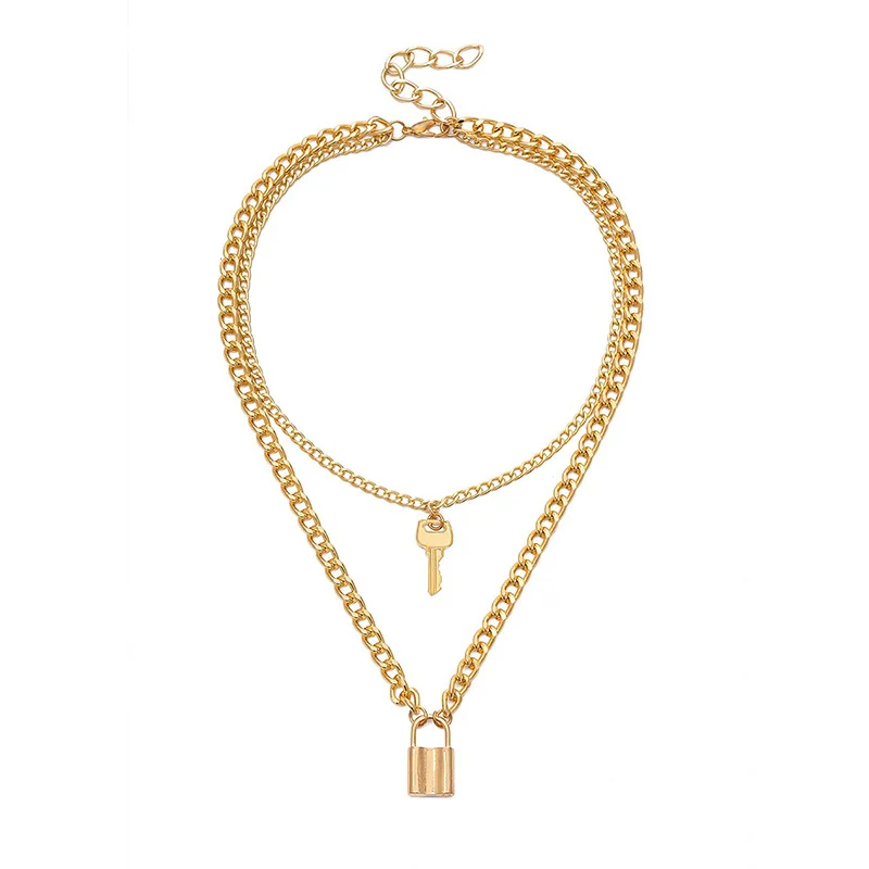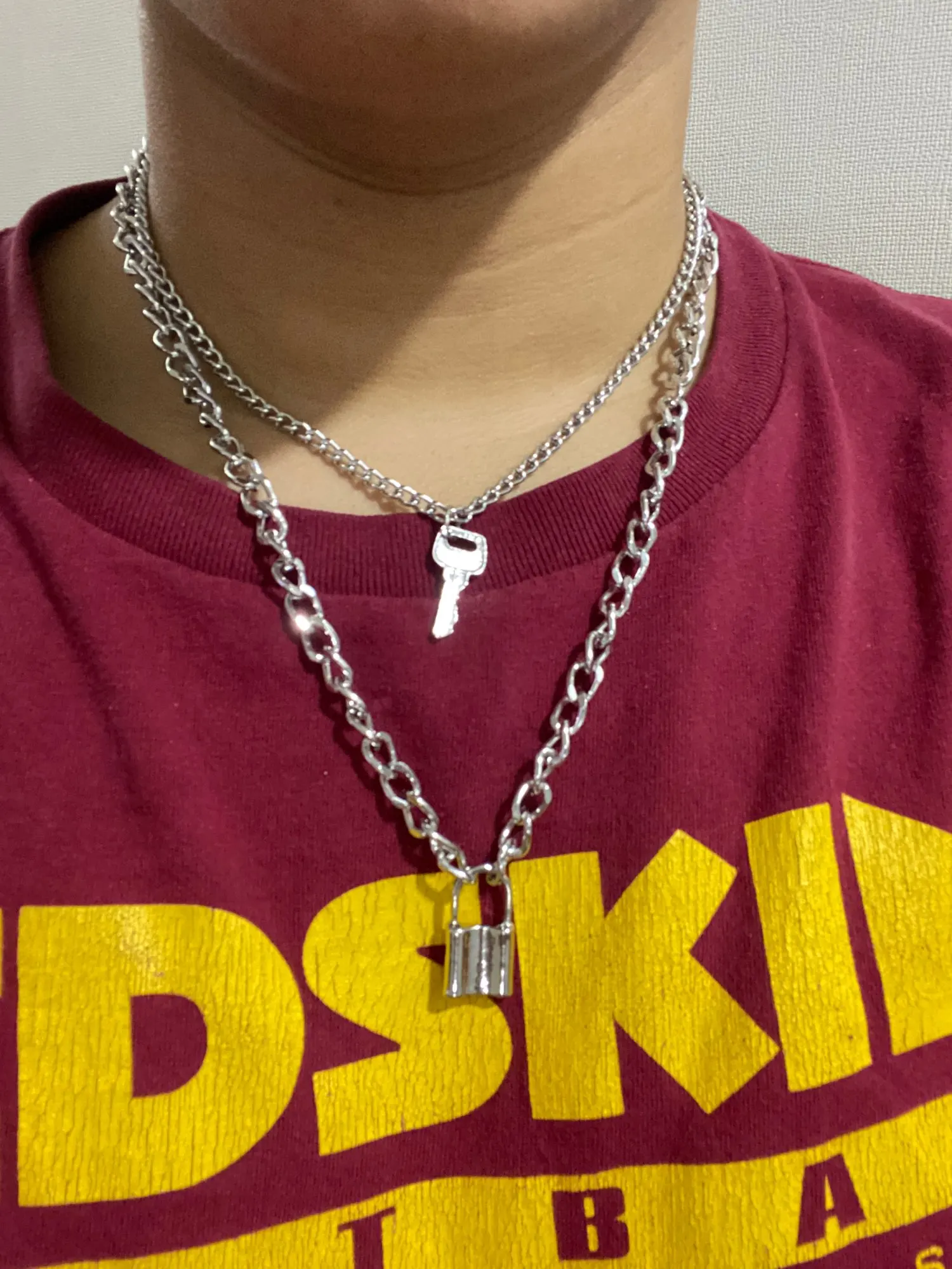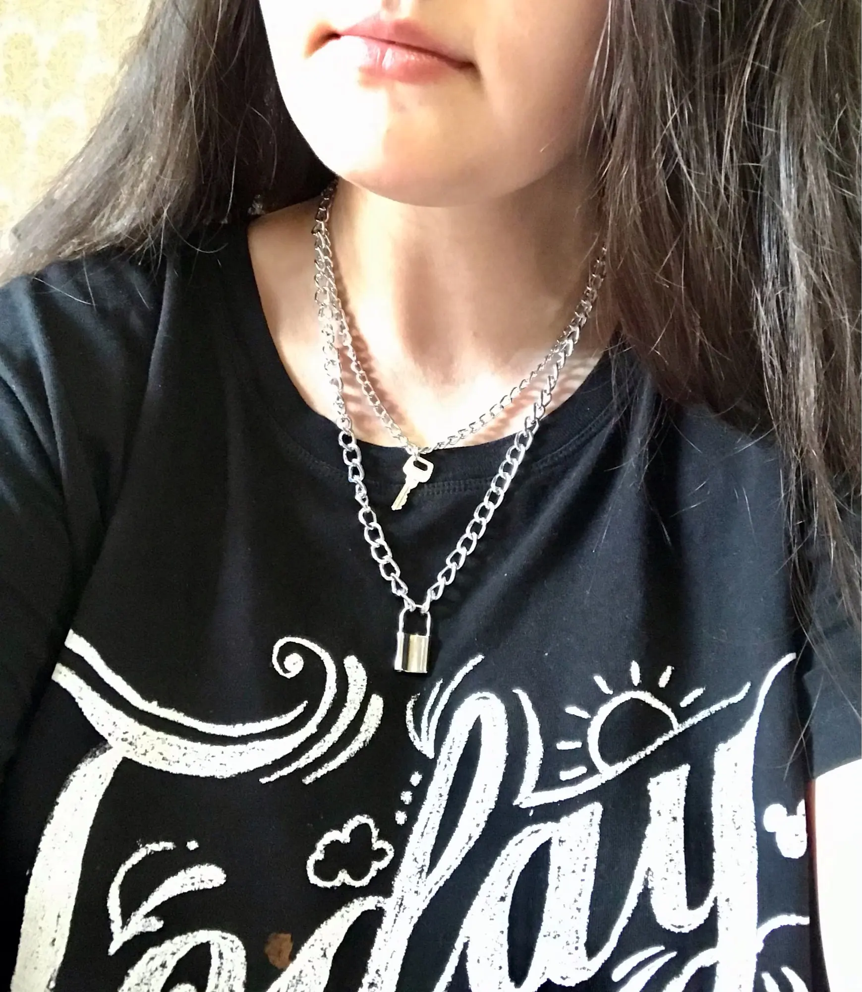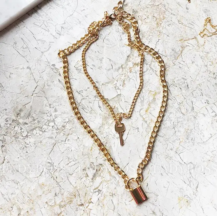 Цепочка с подвеской в виде замка, двухслойная, в стиле панк, для женщин и мужчин, в стиле хип-хоп, Готическая бижутерия, подвеска в виде ключа и замка