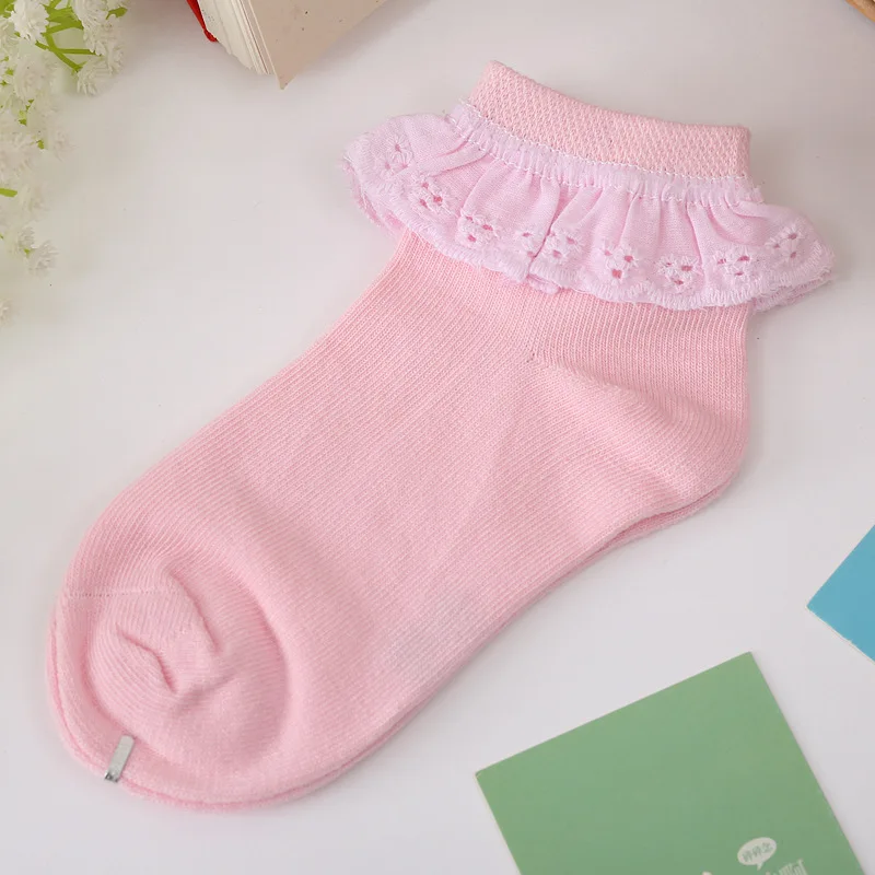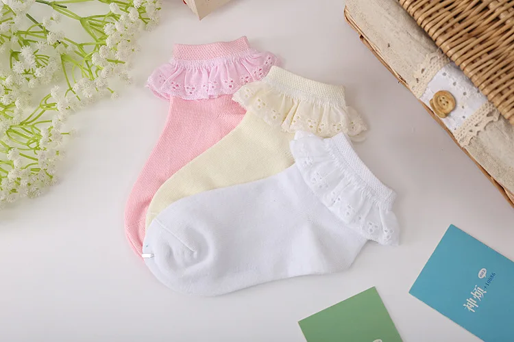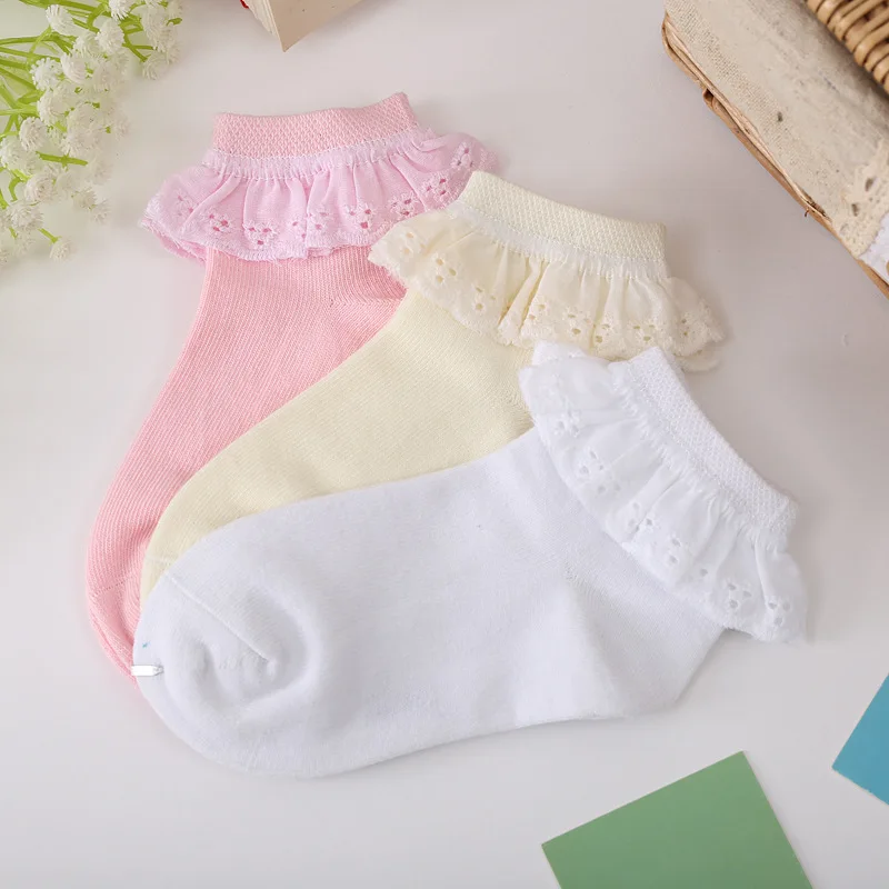 3 пары, осенне-От 1 до 11 лет нескользящие носки с кружевом Короткие носки из дышащей сетки белые розовые хлопковые носки принцессы для малышей