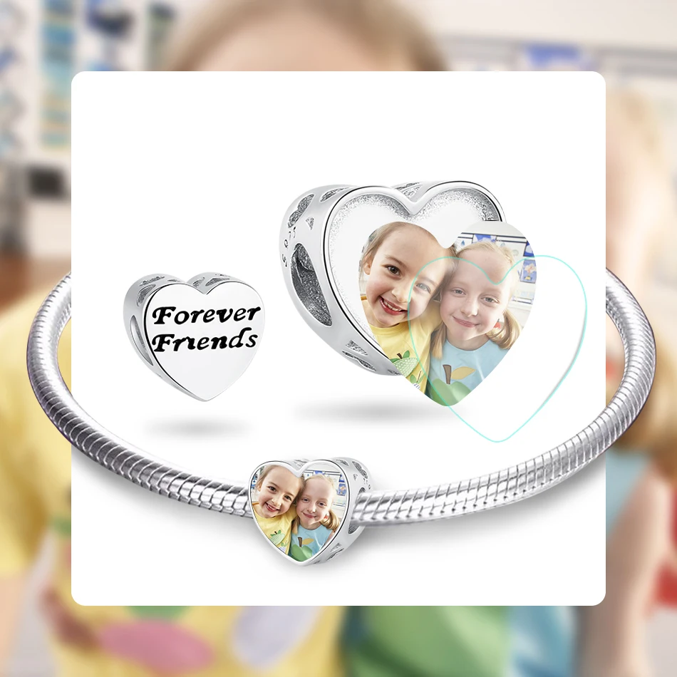Индивидуальные подвески в виде сердца с фото на заказ, 925 Стерлинговое Серебро, подходят для оригинального браслета Pandora, DIY Изготовление ювелирных изделий