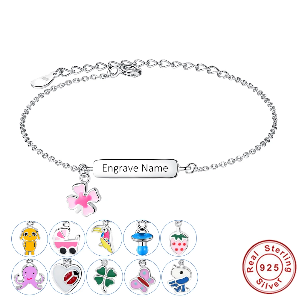Браслет с гравировкой имени, персонализированные рождественские украшения из стерлингового серебра 925 пробы, браслеты с цепочкой для детей, девочек