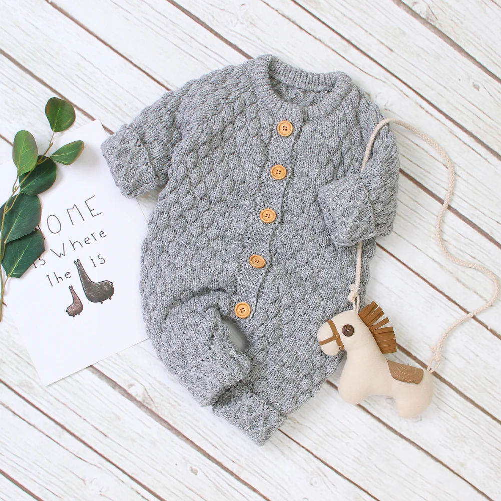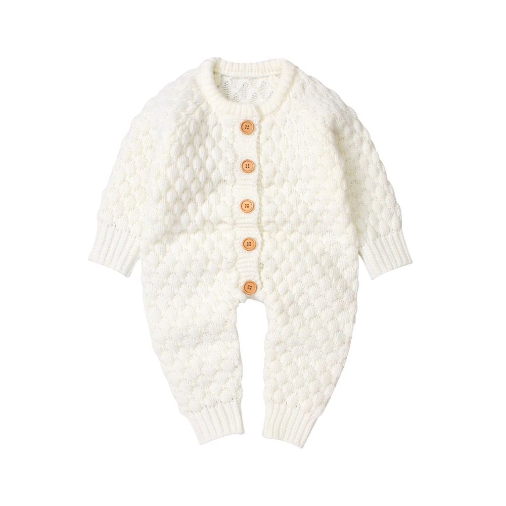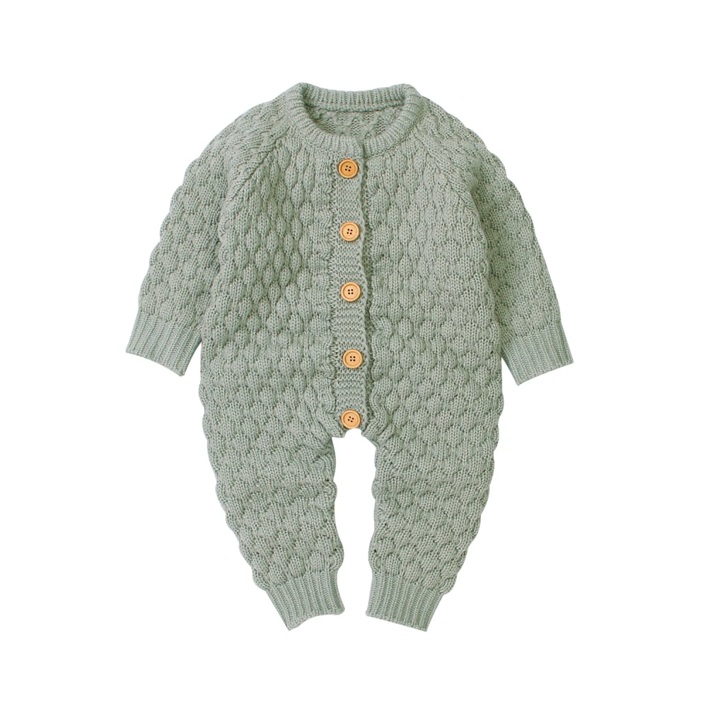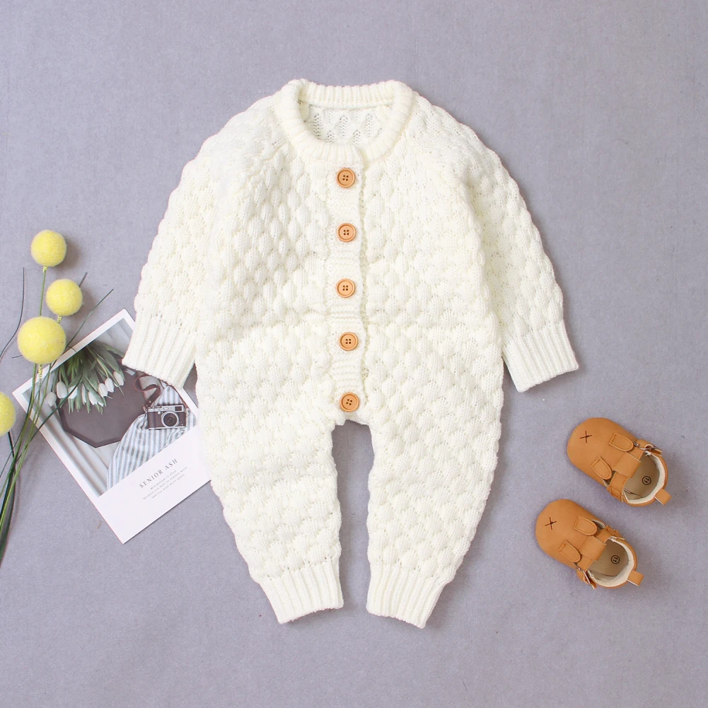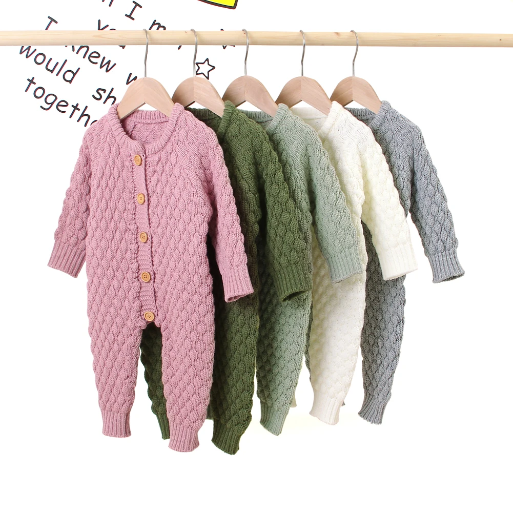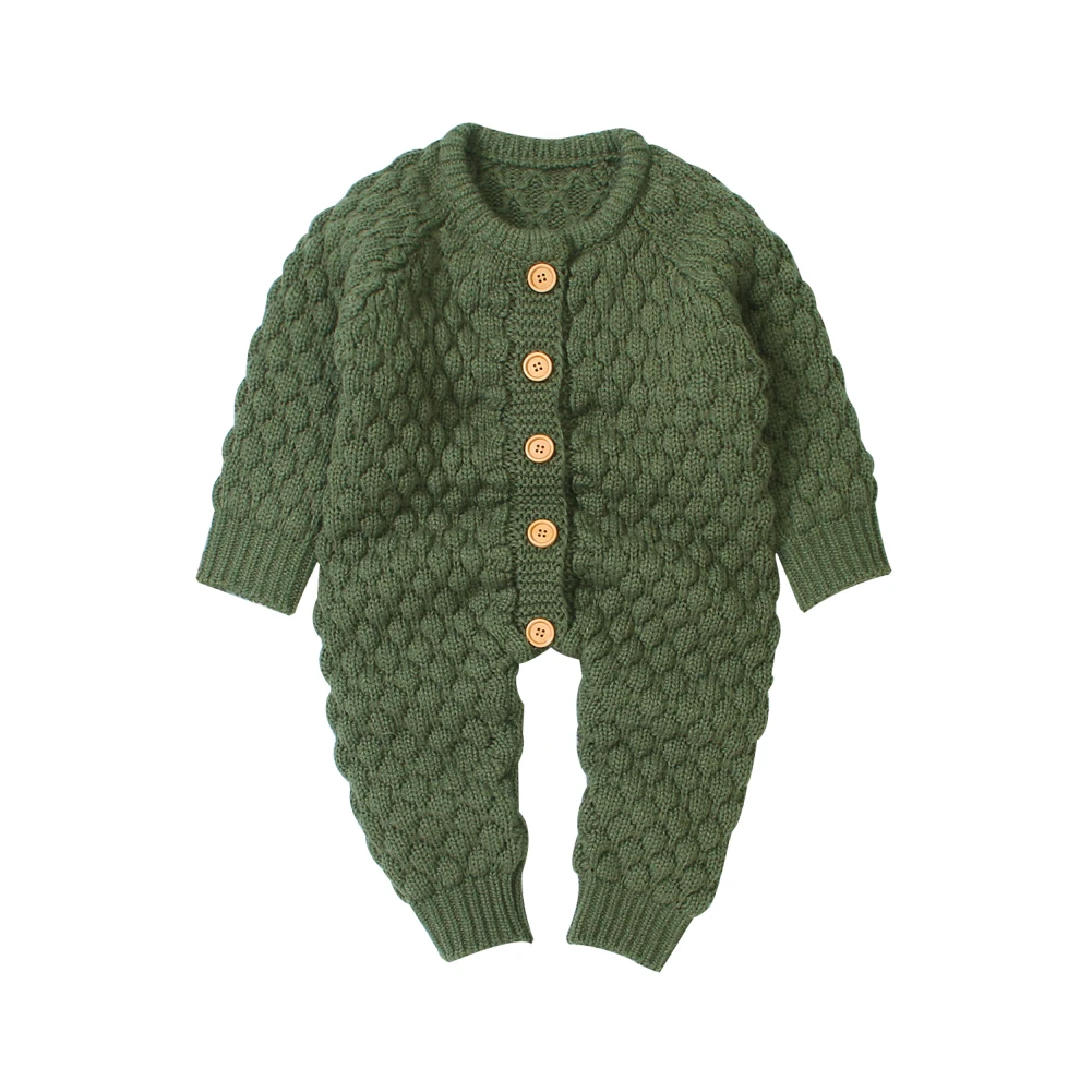 Комбинезон для новорожденных девочек и мальчиков 0-18 месяцев, Вязаный комбинезон с длинными рукавами, теплая осенне-зимняя детская одежда, однотонные костюмы