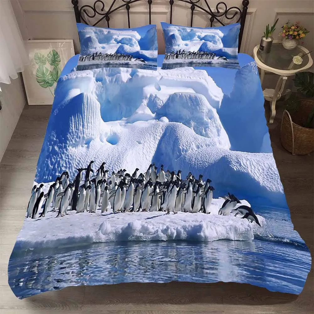 Комплект постельного белья с пингвином, мультяшное животное, пододеяльник, набор для близнецов, полный, королева, король, двойной размер, Комплект постельного белья для детей, мальчиков, домашний текстиль