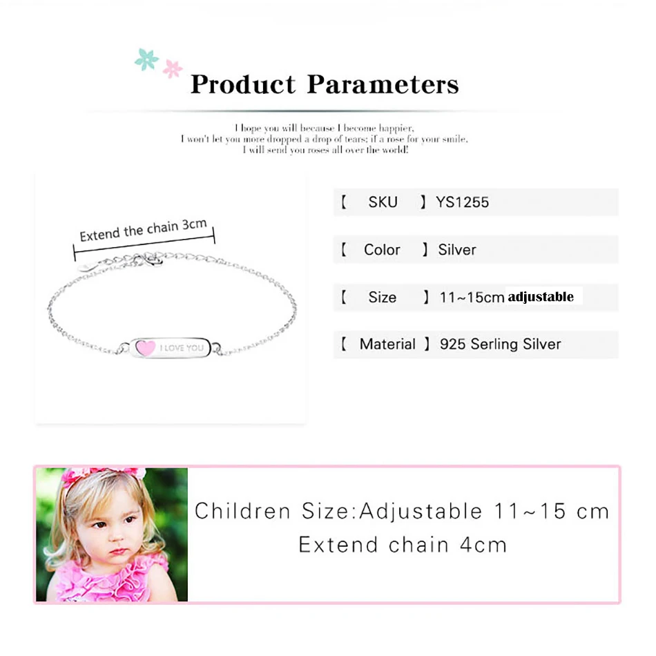 Название:Браслет для девочек из стерлингового серебра 925 пробы, Бесплатная гравировка, модное ювелирное изделие Материал:925 пробы серебра и эмали Детская Размеры:ААстраиваемый11-15 см Для женщин Размеры:ААстраиваемый16-19 см Отгрузка:Мы предоставляем бесплатную доставку и принимаем дропшиппинг, заказ ≥ $150, по DHL/EMS/ARMEX... Как показано на картинке) повод:Подарок Подарок для:Дети, дети, дети, девочки и мальчики Это ювелирное изделие соответствует экологическим требованиям