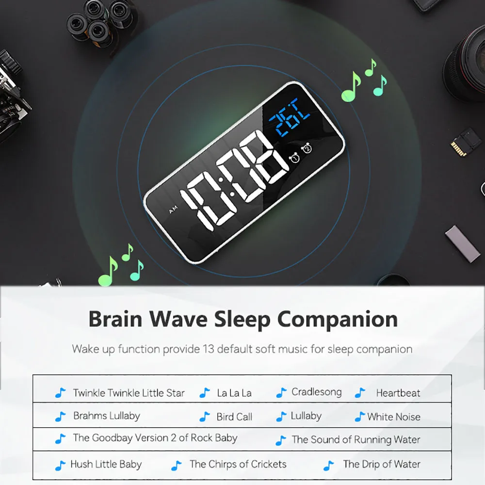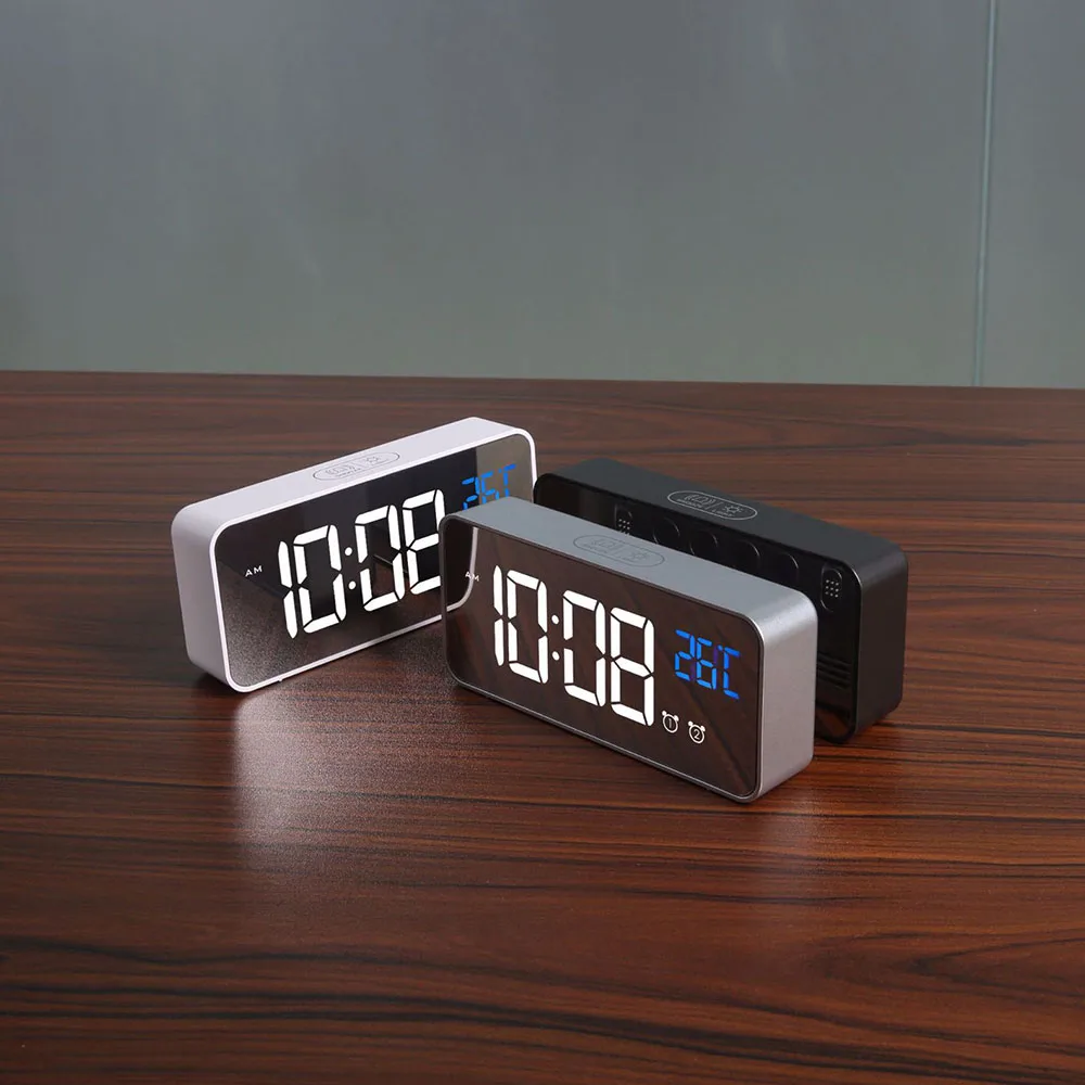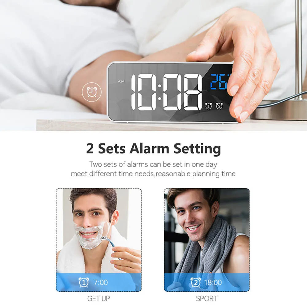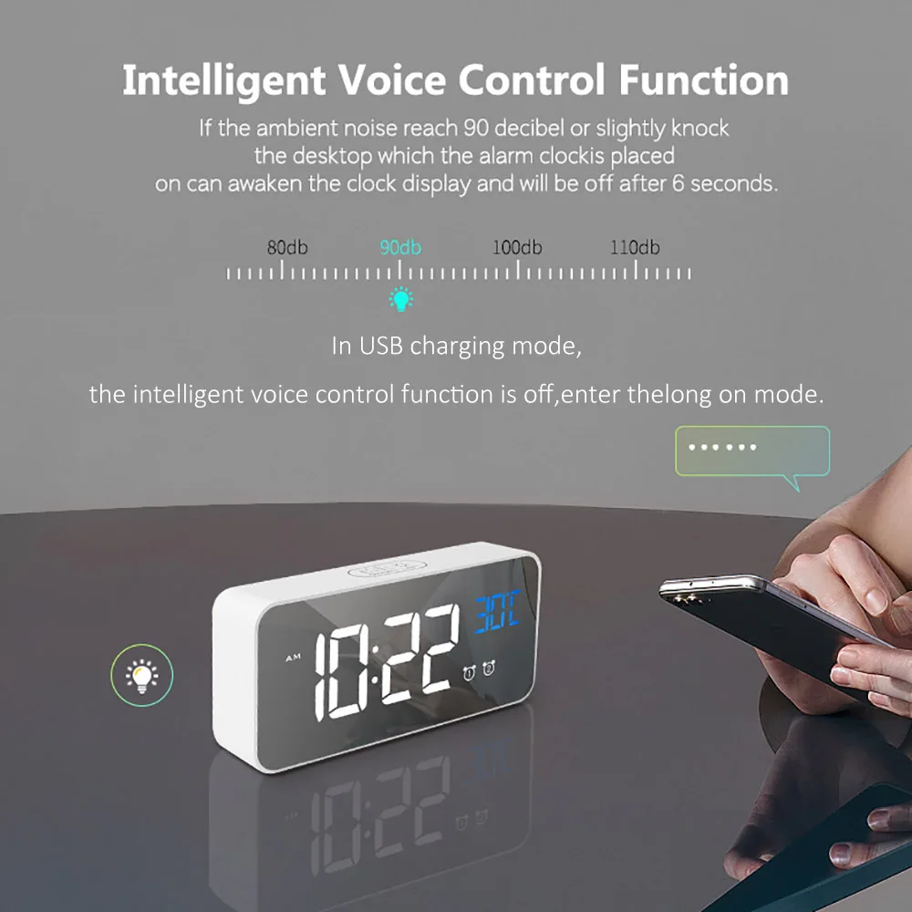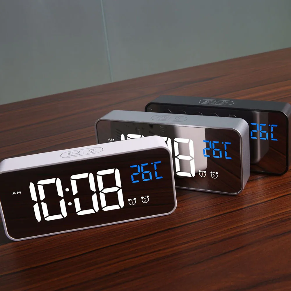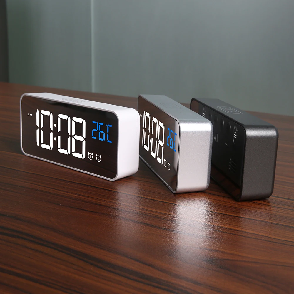 Двойные сигналы с функцией повтора светодиодный зеркальный будильник часы звуковой активации часы перезаряжаемые прикроватные музыкальные часы