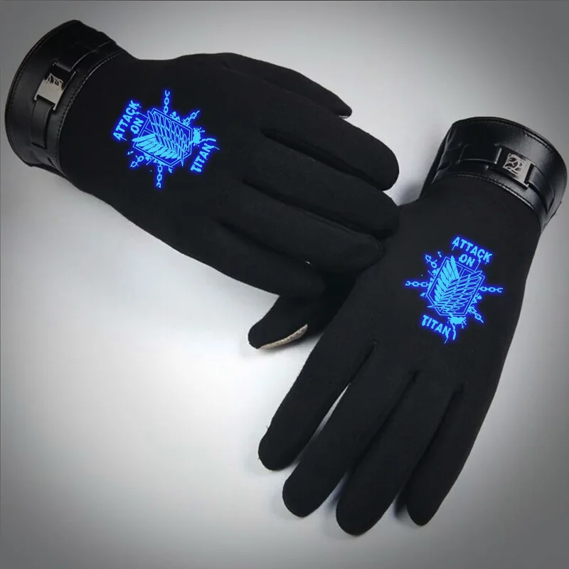 Перчатка для косплея из аниме атака на Титанов, Осень-зима, сохраняющая тепло, серебристые черные перчатки с закрытыми пальцами, аксессуары, костюм для рук