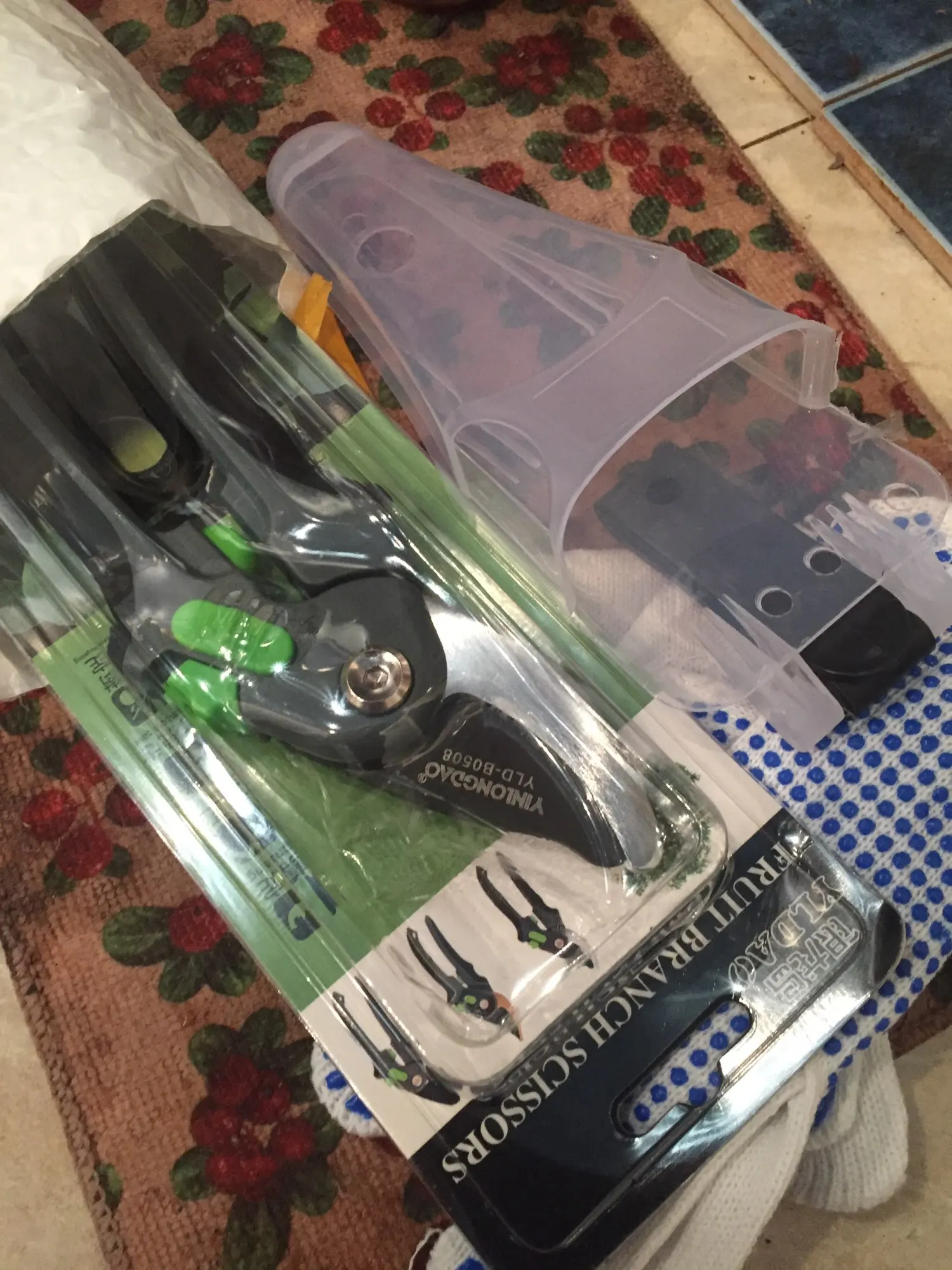 В сентябре заказали секаторные ножницы. В конце концов, доставка только в течение января. Ножницы для обрезки выглядят красиво и надежно. Ножницы немного тяжелее, чем ожидалось (больше мощности). Острое лезвие. Красивая кобура, где вы можете хранить или использовать секаторы во время обрезки. Перчатки размера M (Нидерланды)