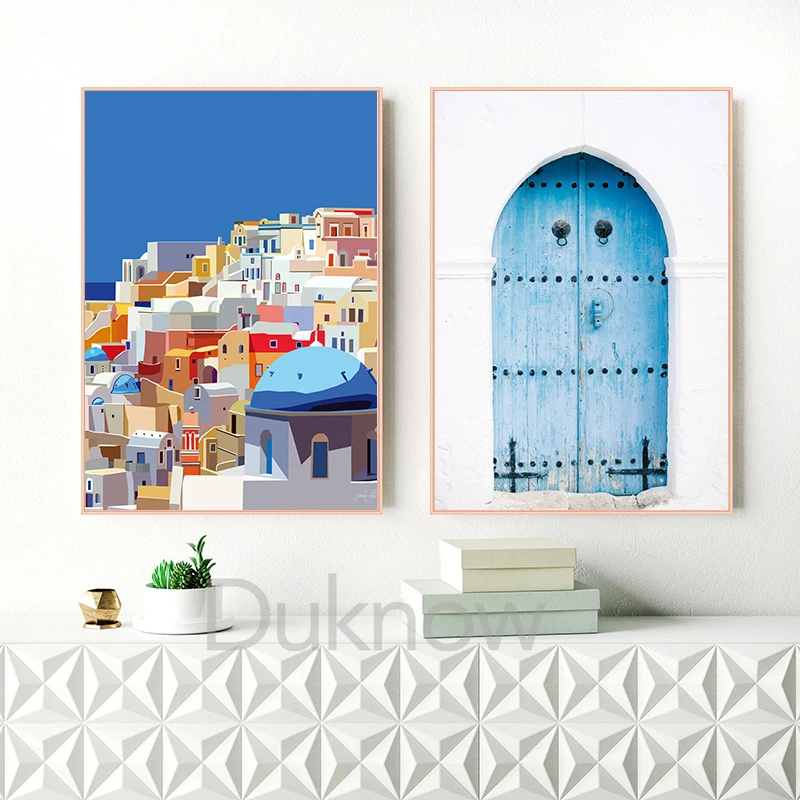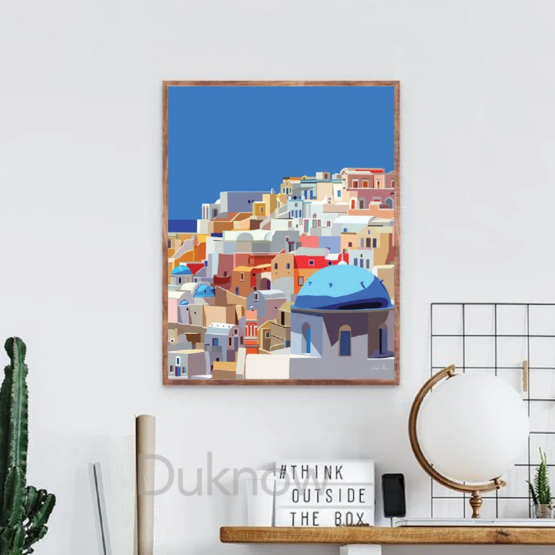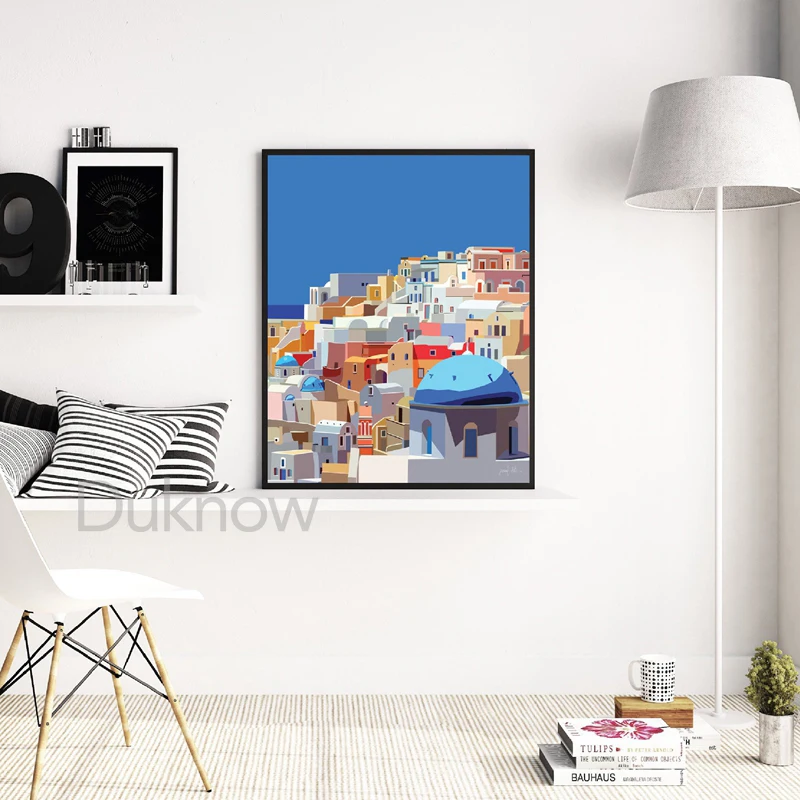Санторини принты греческие острова Oia Санторини греческие стены искусства холст живопись красочные работы Средиземноморский Декор путешественник подарок