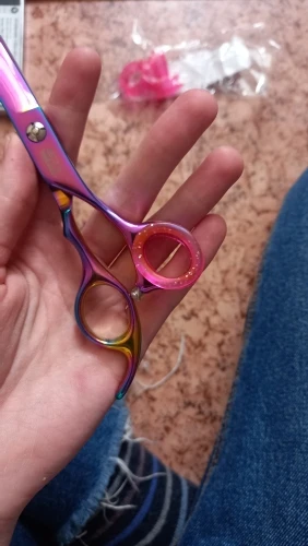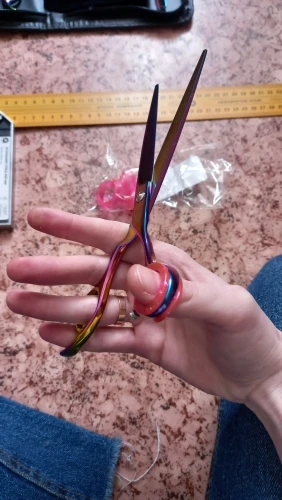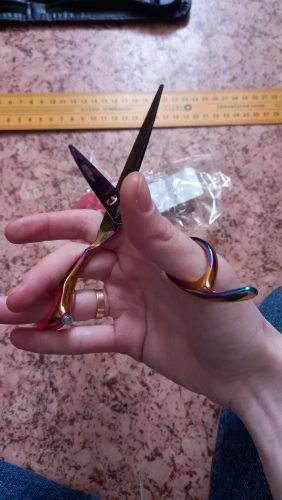 Кольца супер! не знаю кто там пишет что они огромные, свою функцию они выполняют. вставляются тяжело, надо приложить усилия, но оно того стоит - на фото видно насколько сильно у меня проваливается палец в ножницы, с колечком такого нет, на фото тот максимум, в который может пролезть мой палец, для меня это очень удобно, именно этого я и ждала - чтоб палец не проваливался. размер с линейкой прикладываю для удобства.