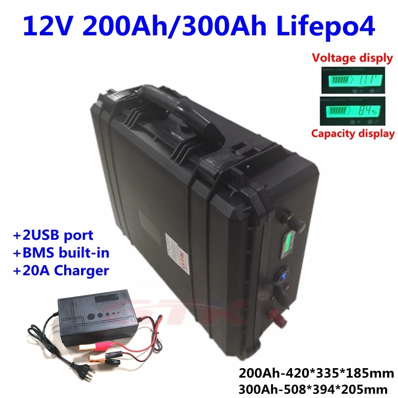 12V 200Ah/300Ah LiFepo4 аккумулятор Встроенный BMS