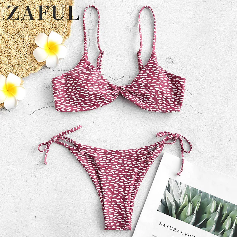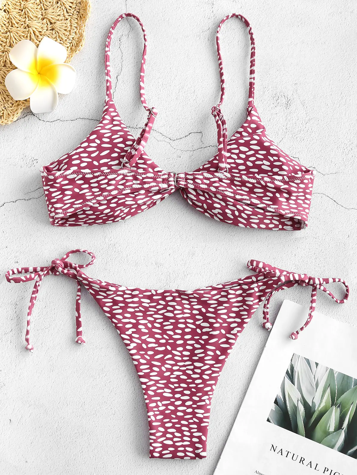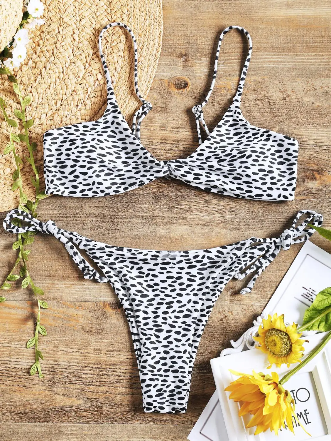 Стринги в горошек, комплект бикини, соблазнительный купальник-бикини в горошек, с завязкой спереди, купальник в горошек, женский купальник, женский пляжный Бразильский купальный костюм, 2021