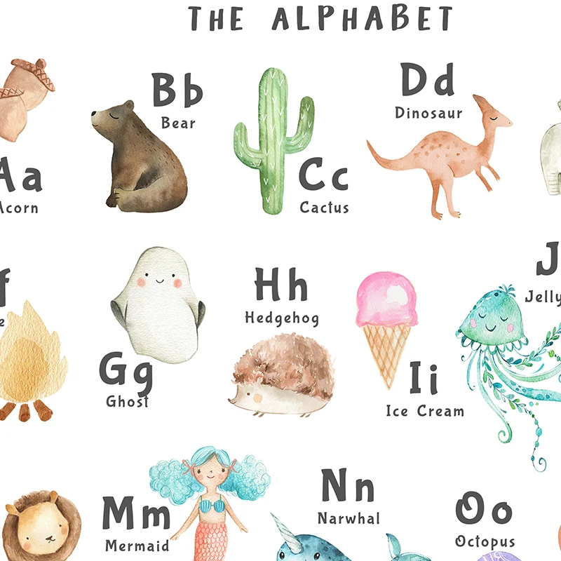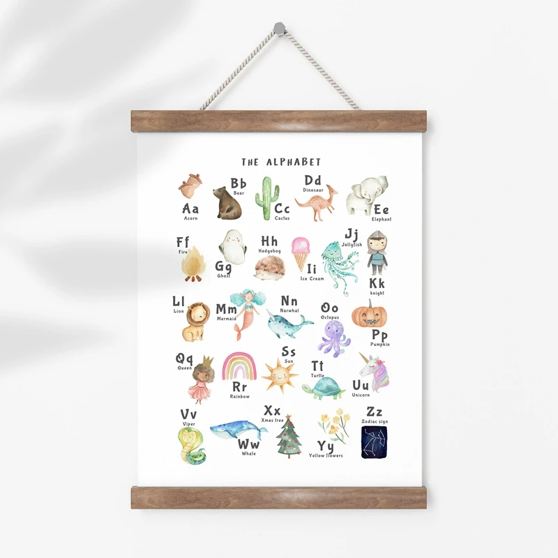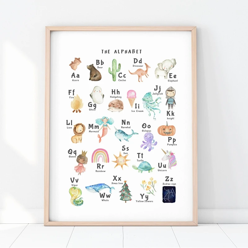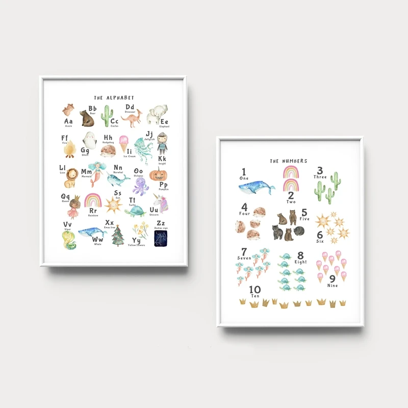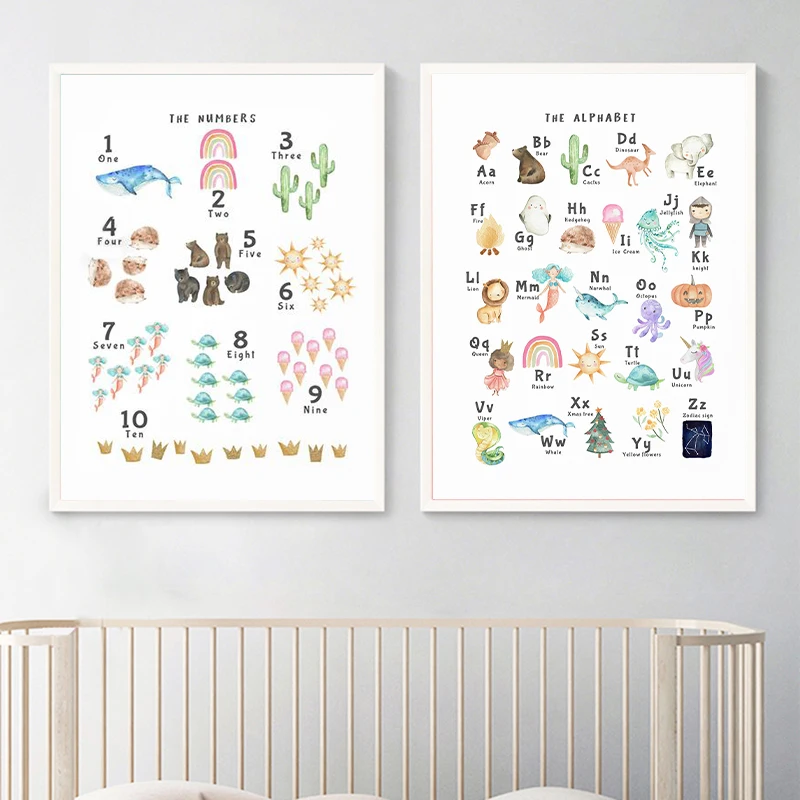 Алфавитный принт, учебный плакат, детская Настенная картина, холст, живопись, номера и алфавит, украшение для стена игровой комнаты