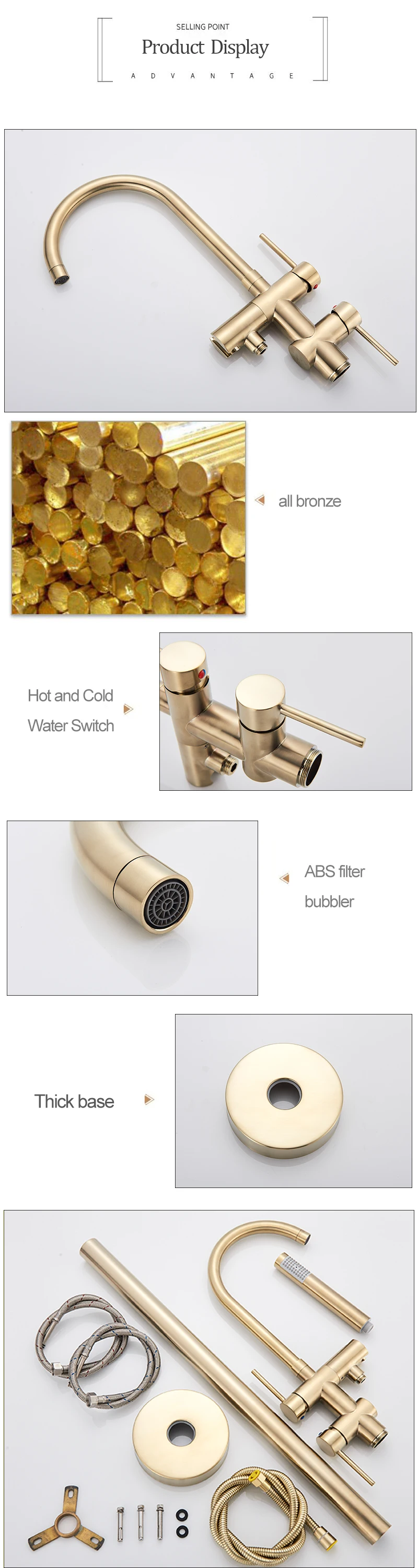 Senlesen, напольный смеситель для душа в ванной комнате, матовый золотой Латунный Кран с двойными ручками, смеситель холодной и горячей воды