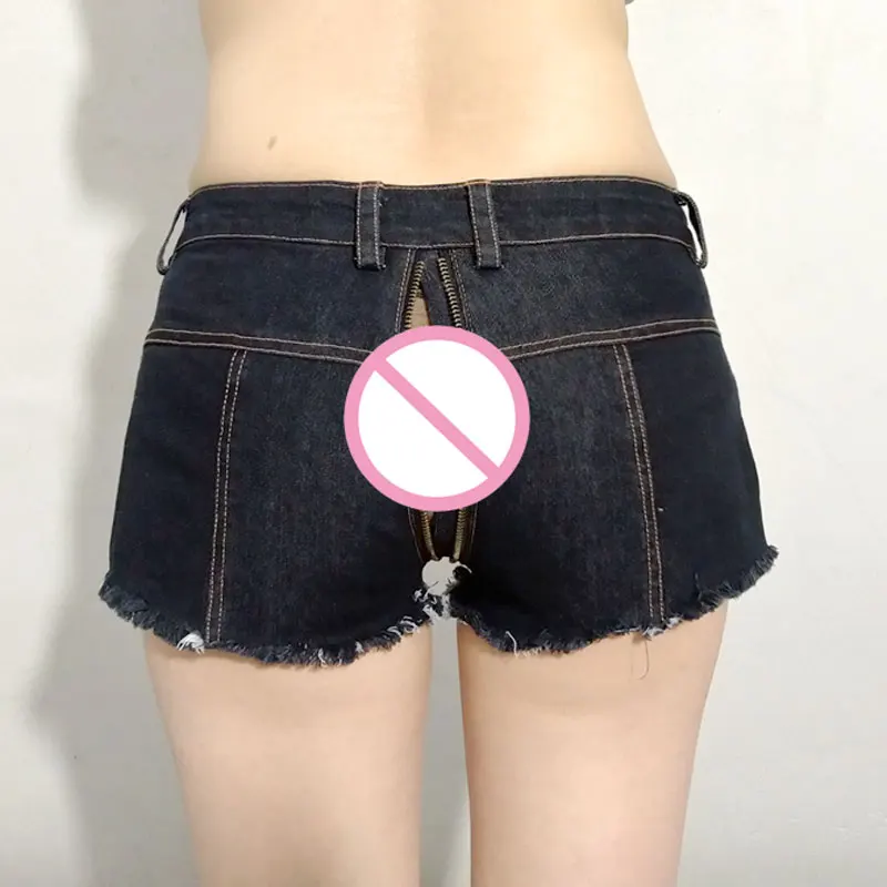 Женские джинсовые шорты с открытой промежностью XS-4XL на молнии, женские сексуальные джинсовые шорты с кисточками, женская одежда для ночного клуба, микро мини-шорты, джинсы