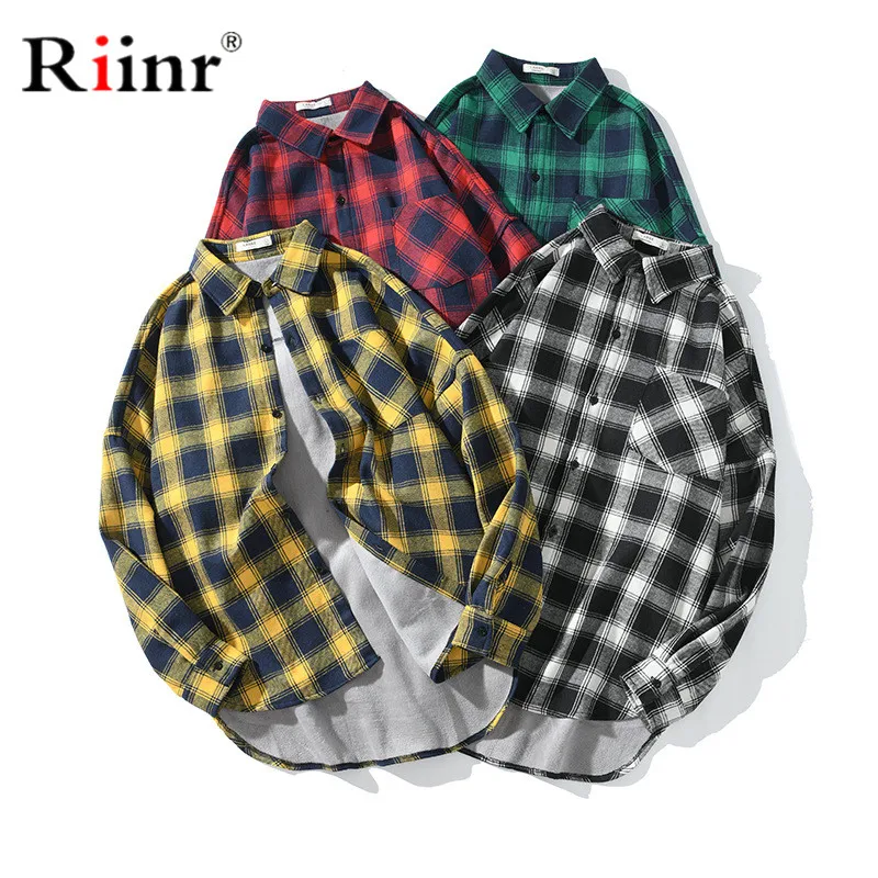Мужская клетчатая рубашка Riinr, модная повседневная рубашка в стиле хип-хоп с длинными рукавами, весна-осень