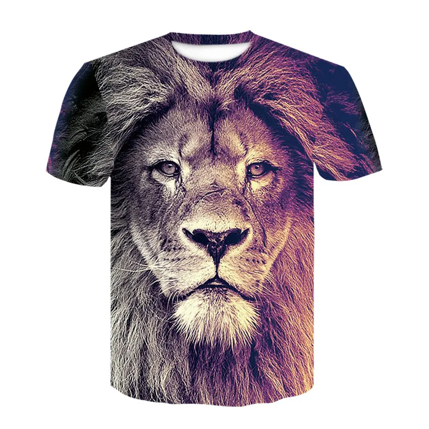 Мужская футболка, Повседневная футболка с 3D-принтом льва, с коротк...