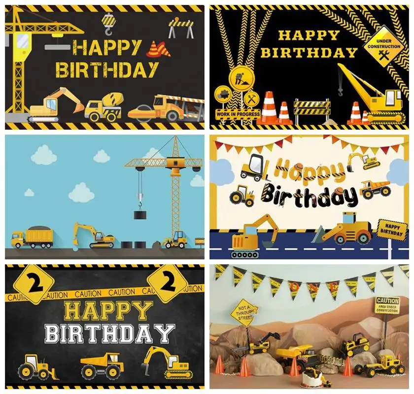 Laeacco день рождения фоны строительные зоны экскаватор грузовик журавль строитель мальчик новорожденные фотографии фоны для фотостудии