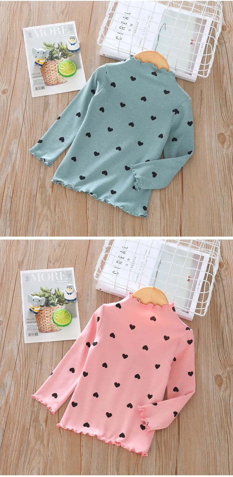 Рубашка для девочек, с длинным рукавом и круглым вырезом, с сердечком, из хлопка, 2021
