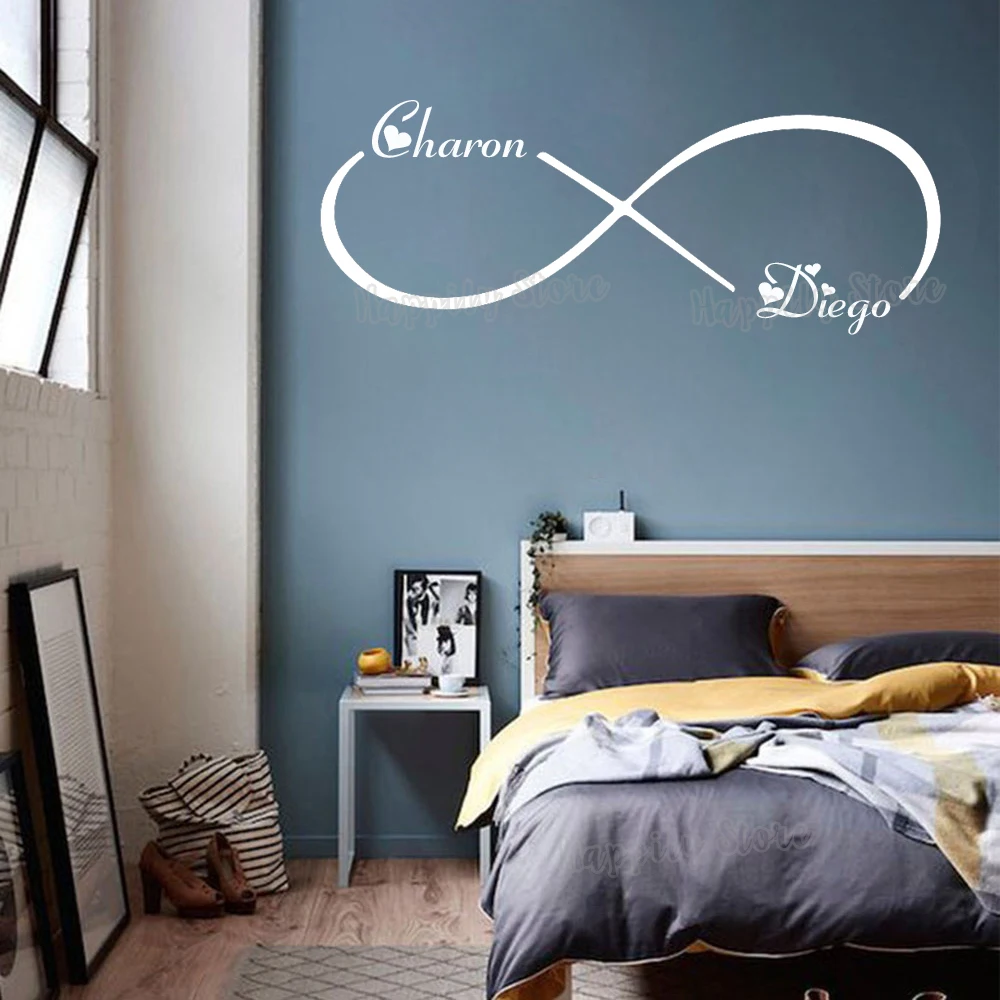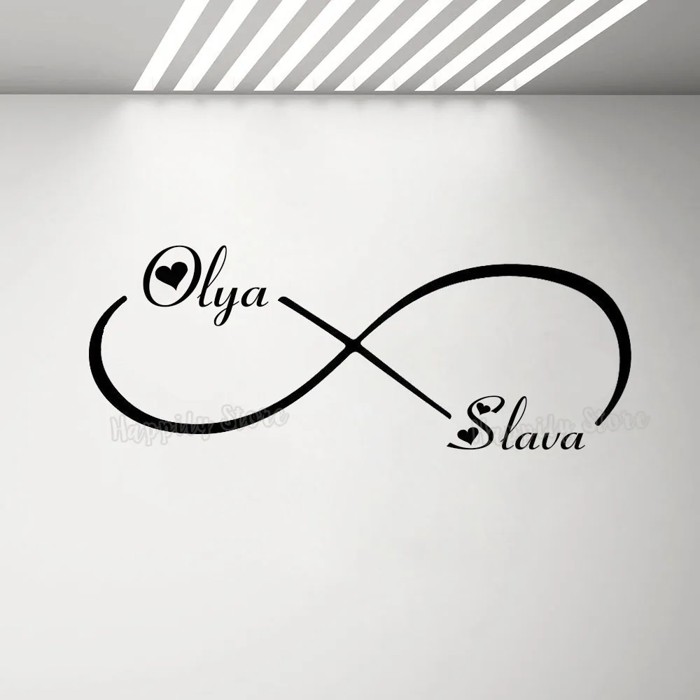 Бесконечная любовь наклейка пользовательские имена пары настенные наклейки сердце с бесконечностью любовь стены виниловая наклейка Свадебный декор для главной спальни G944