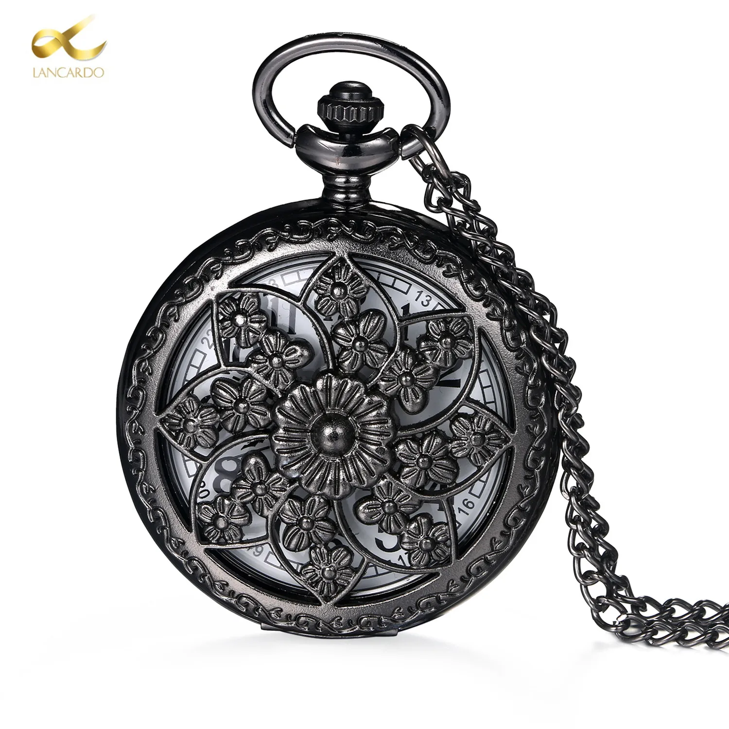 Винтажные бронзовые часы Lancardo, карманные часы в стиле стимпанк с вырезами, кварцевое ожерелье с карманом 82 см, Подарочная цепочка для мужчин и женщин