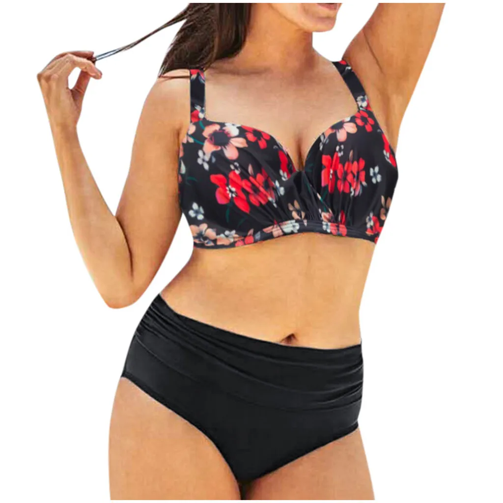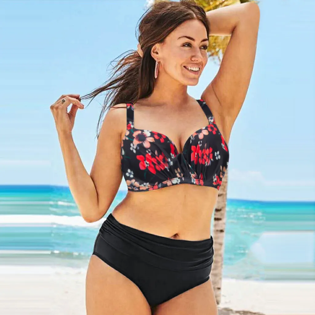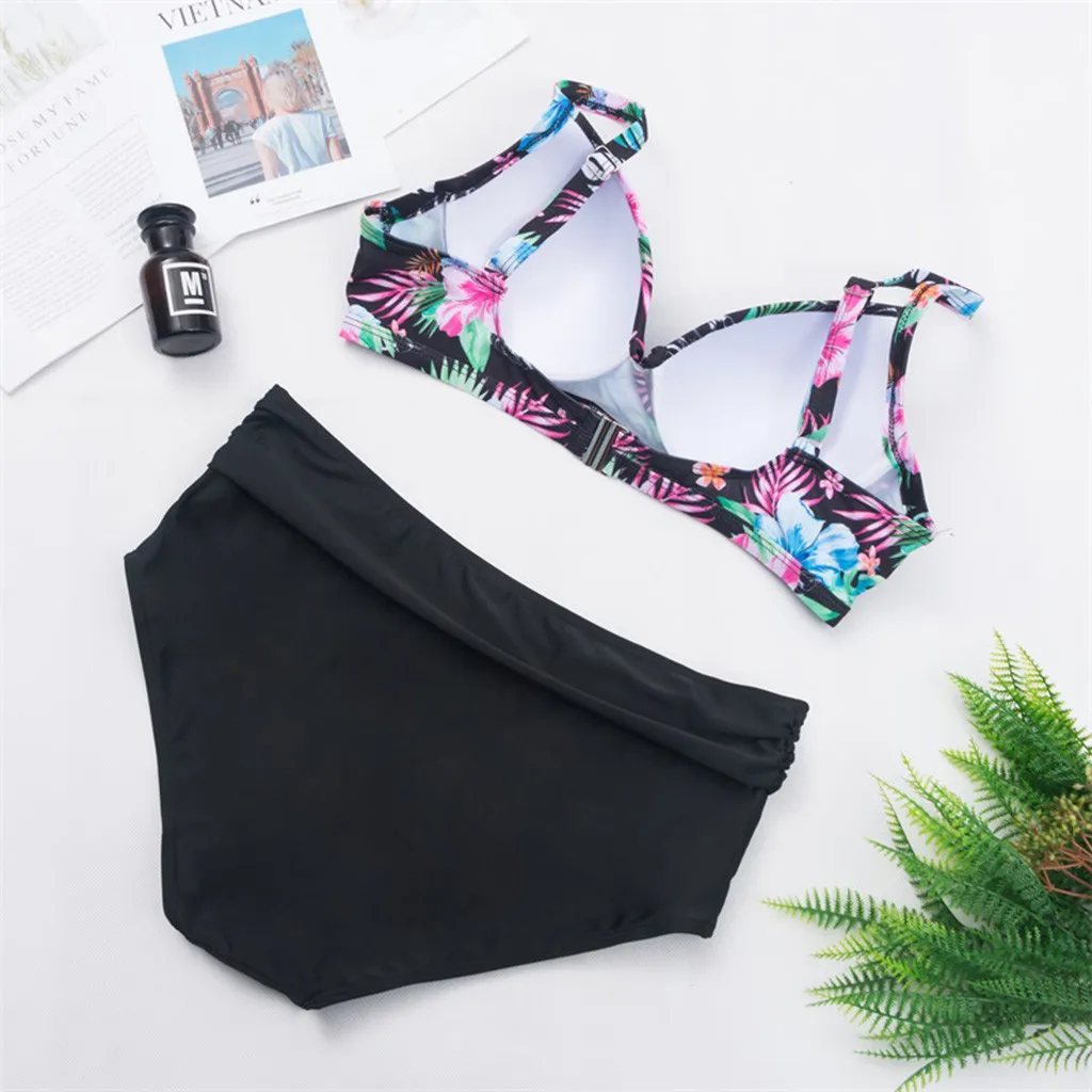 Женский сексуальный купальник, бикини с разрезом и высокой талией, большой купальник с принтом, пляжная одежда, купальный костюм, летнее бикини из двух частей, бикини