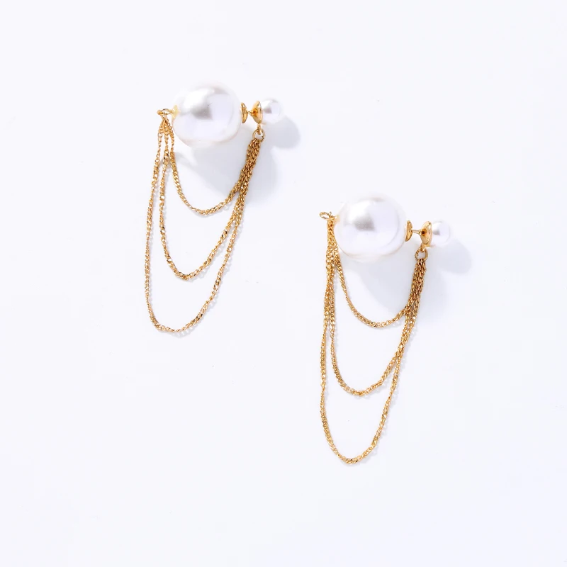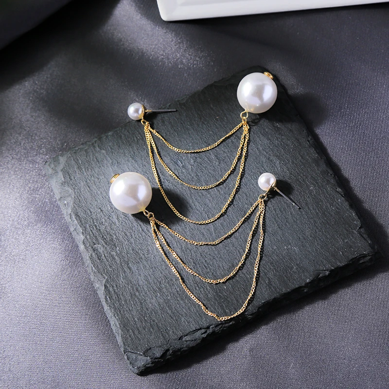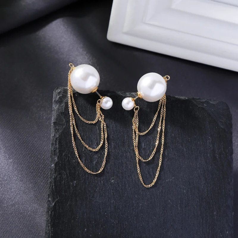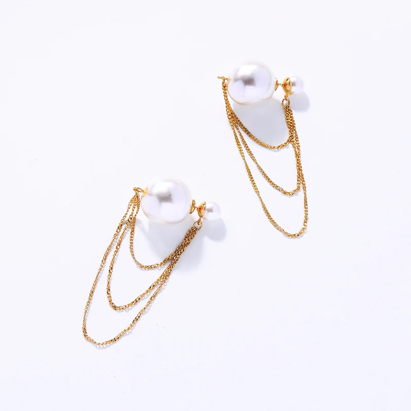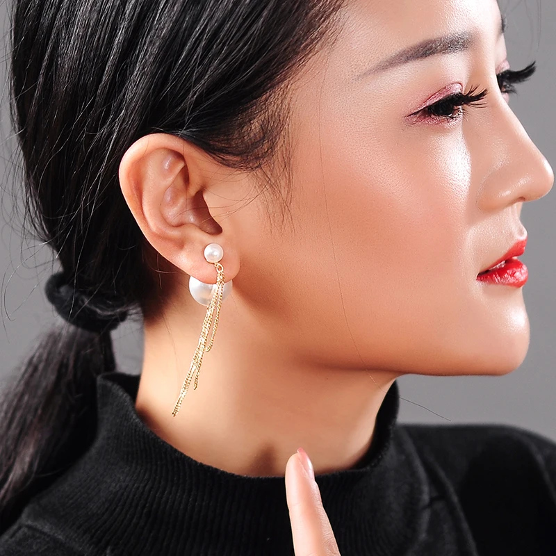 Жемчужные серьги, 2 стороны, золотистые цепочки, Модные женские ювелирные изделия