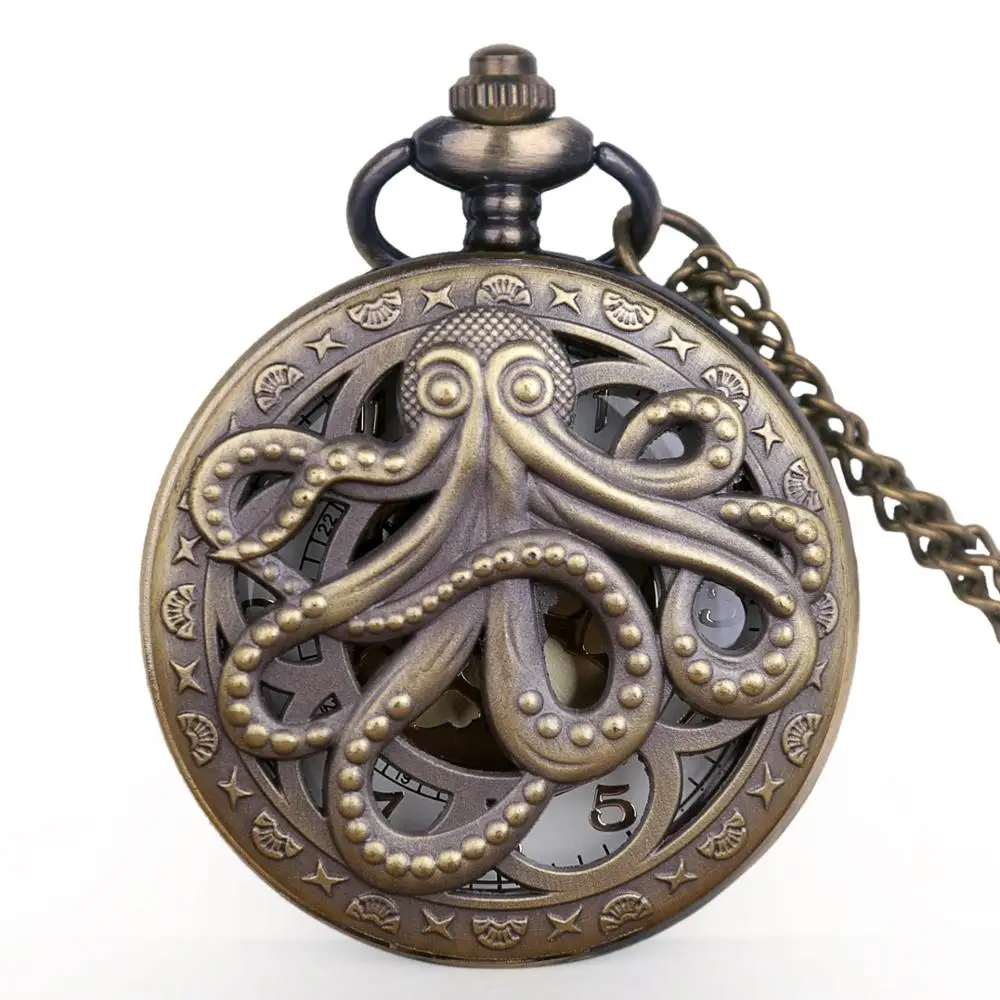Часы карманные кварцевые в форме осьминога, с цепочкой, винтажные, ...