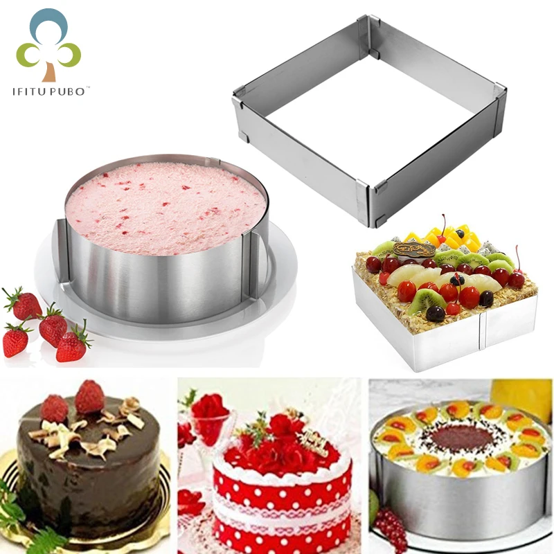 Регулируемое круглое кольцо для Мусса из нержавеющей стали квадратная форма для выпечки, форма для выпечки, кондитерских изделий, десертов, аксессуары для украшения торта ZXH