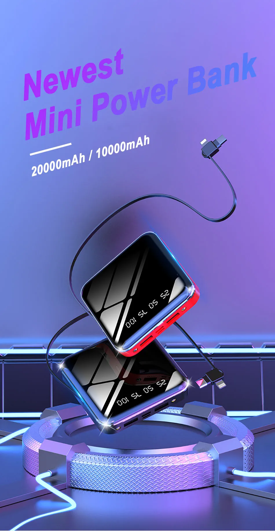 Внешний мини-аккумулятор с цифровым дисплеем, 20000 мАч, 10000 мАч