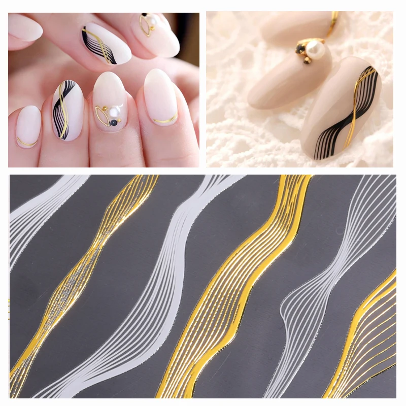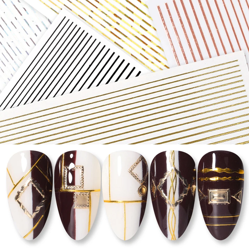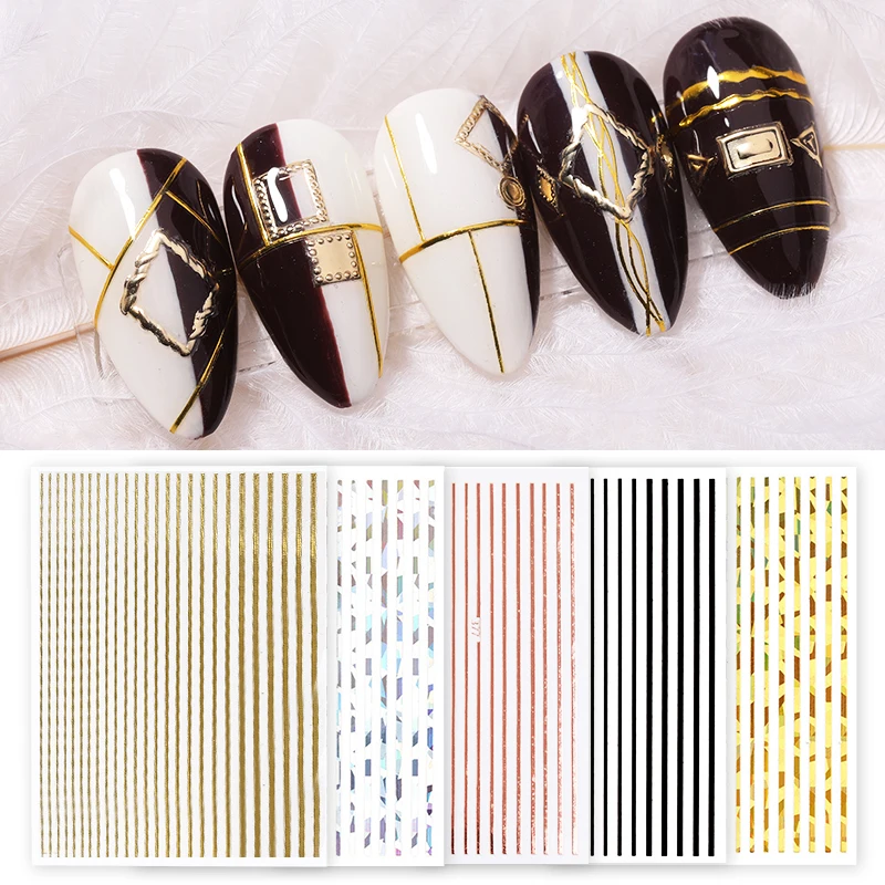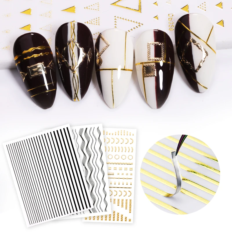 3D линия горячего тиснения для дизайна ногтей Наклейка простые черн...