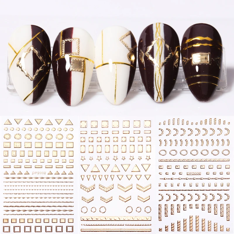 Золотая 3D наклейка для ногтей, полоса, геометрическое сердце, само...