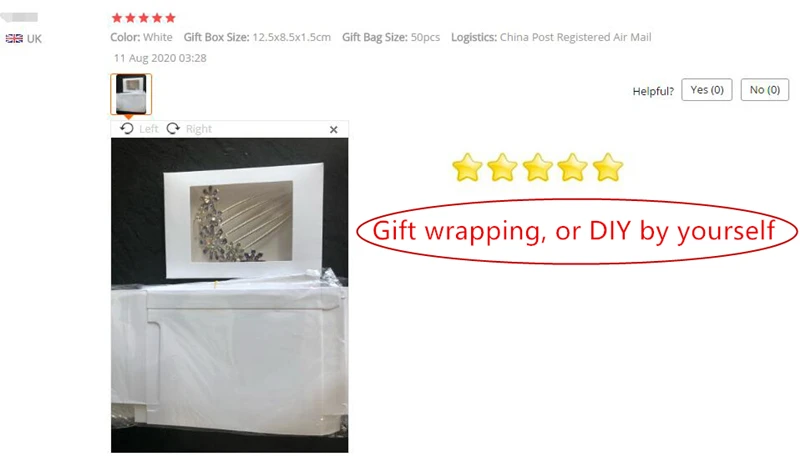 Страна: ES Color: White Gift Box Size: 12.5x8.5x1.5cm Gift Bag Size: 50pcs Доставка: Standard Shipping 08.02.2021