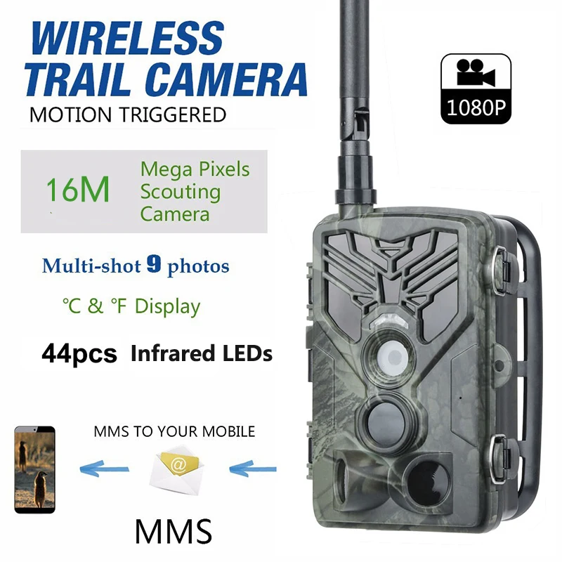 Фотоловушка Беспроводная с функцией ночного видения, 2G, 3G, 4G, SMS, MMS, 16 МП, 1080P