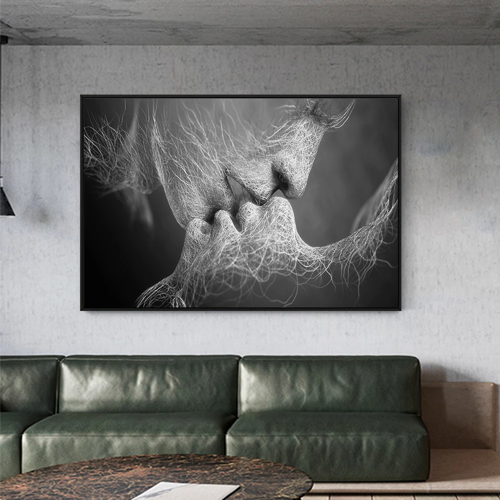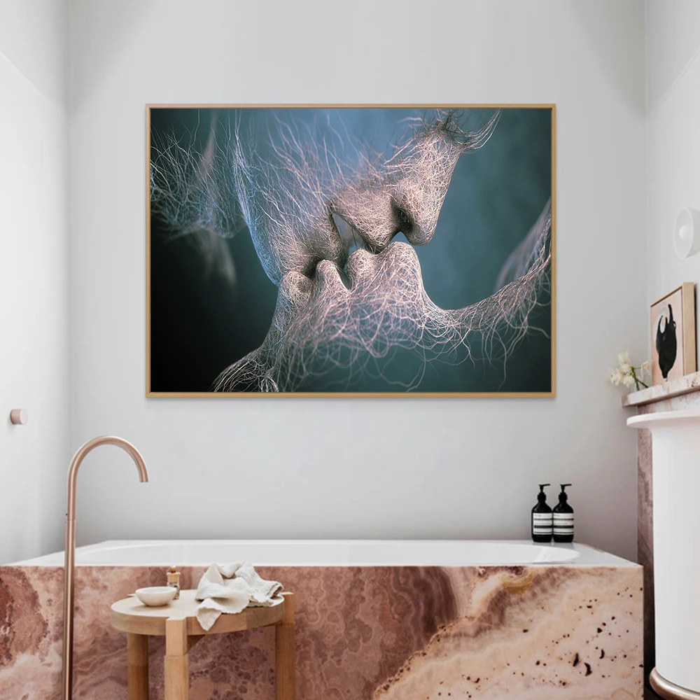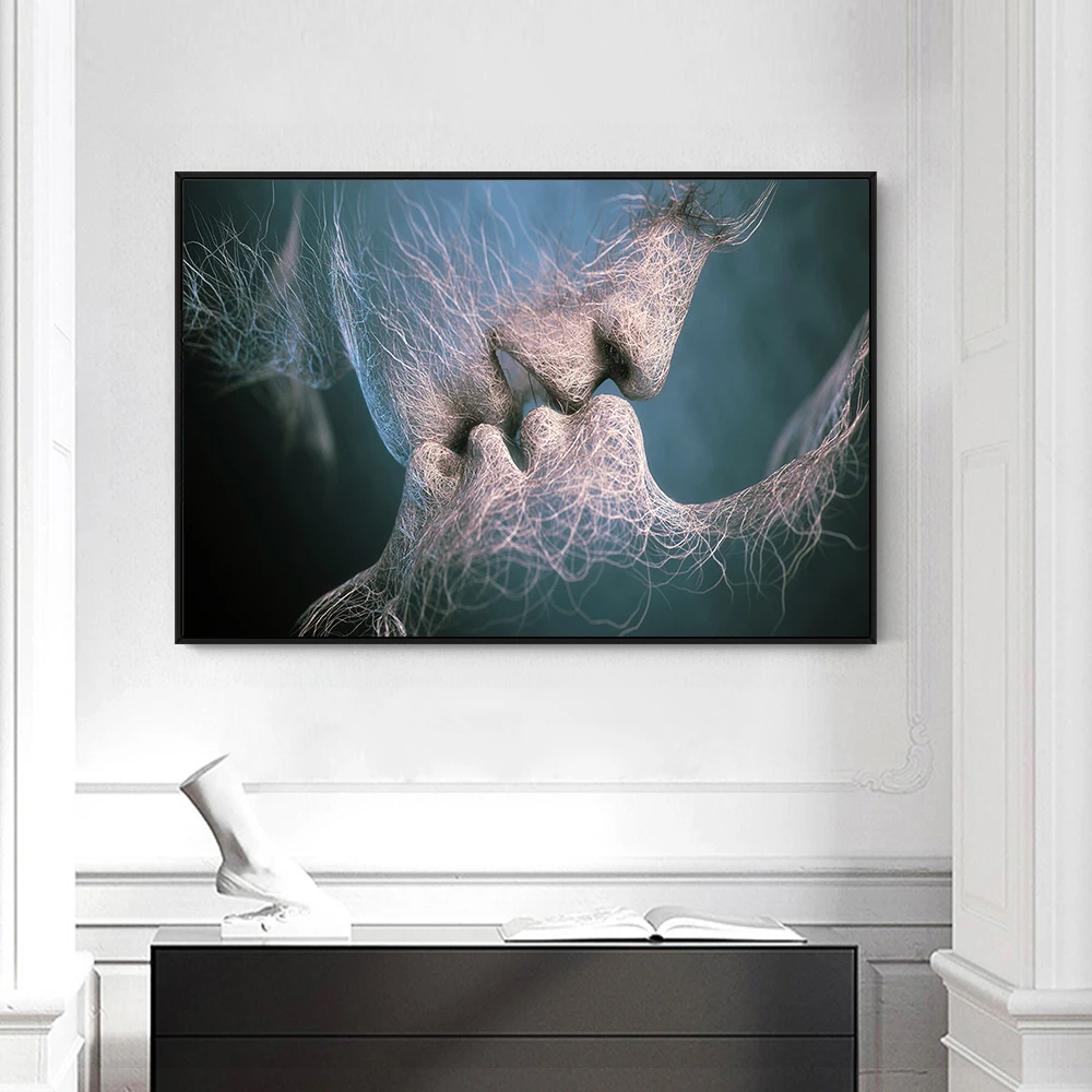 Пара поцелуев на абстрактном холсте, живопись 3d, Художественная печать, Современное украшение Сладкий поцелуй, изображение для украшения гостиной
