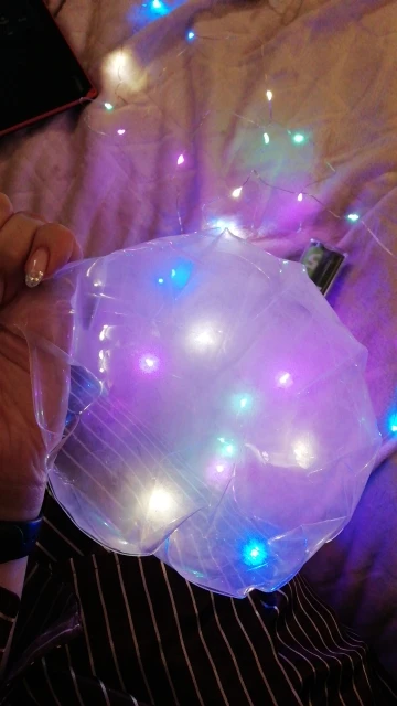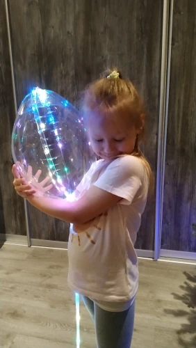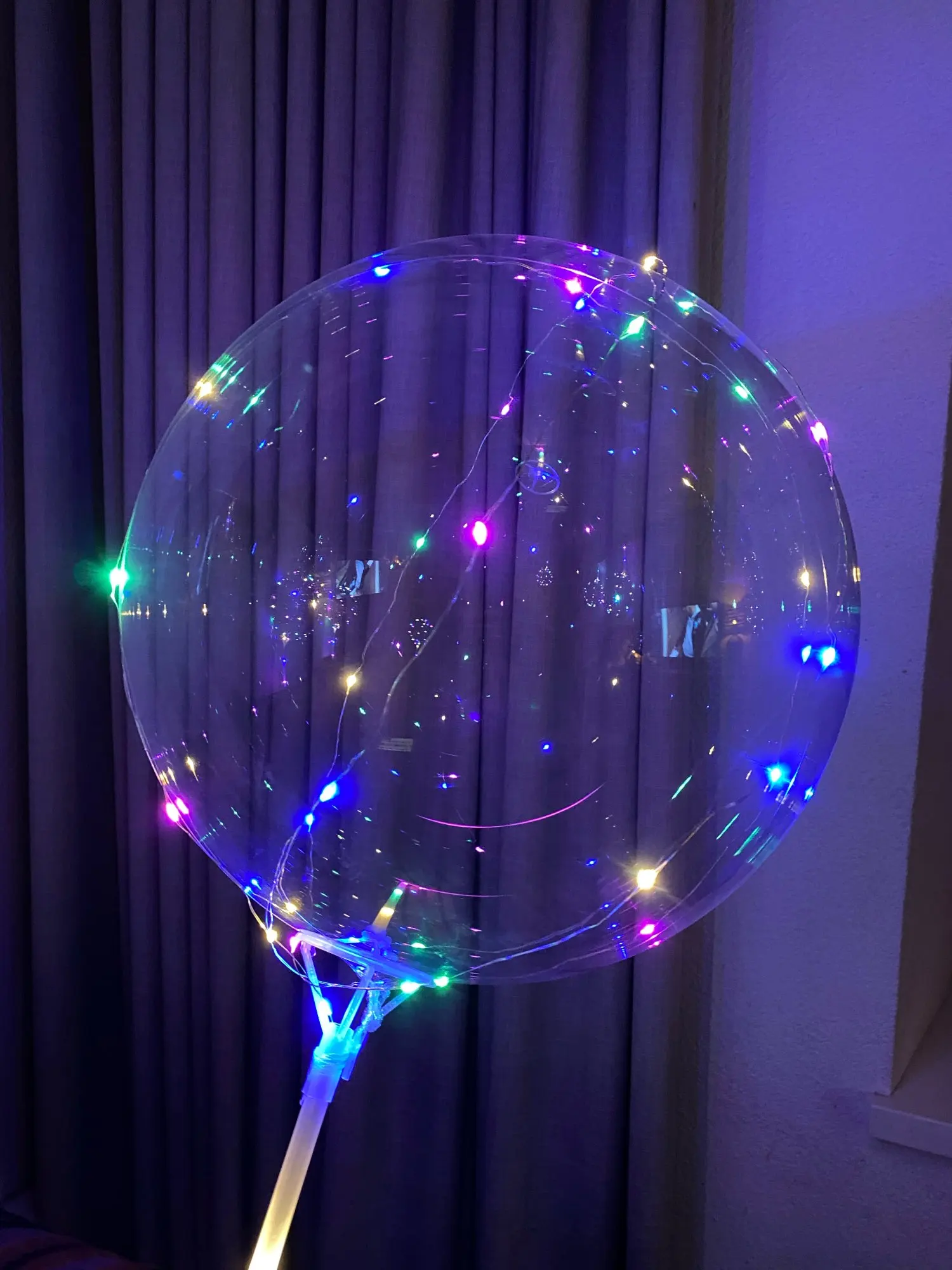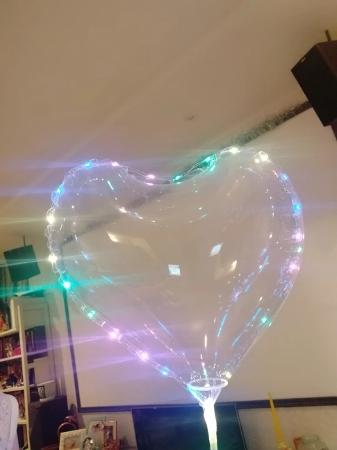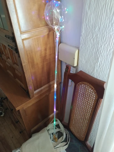 товар пришел быстро, все работает, хоть и на вид тумблер и сама коробочка под батарейки очень хлипкие, но наверное это норм за эти деньги. лично нам попался шар с неровной пайкой по шву из-за чего когда надули шар он стал более похож на яйцо.